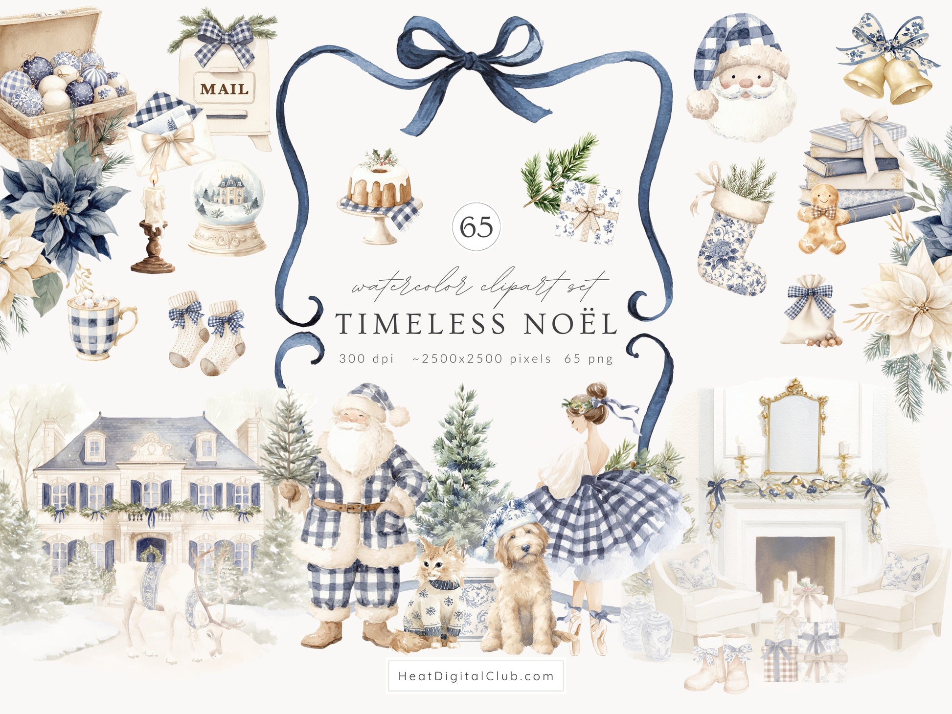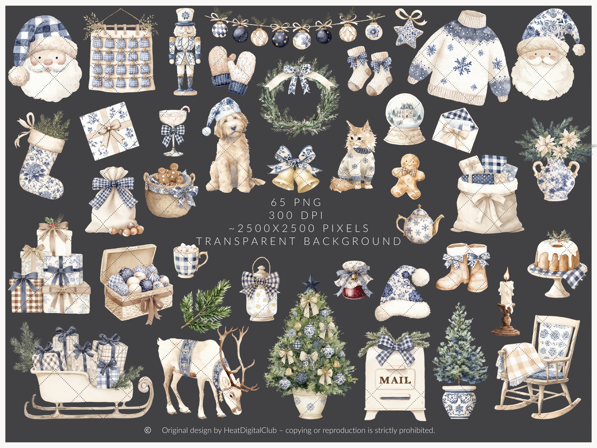 Timeless Noël - Clipart Set, Cozy Winter, Christmas, Grandmillennial | 65 PNG/JPEG