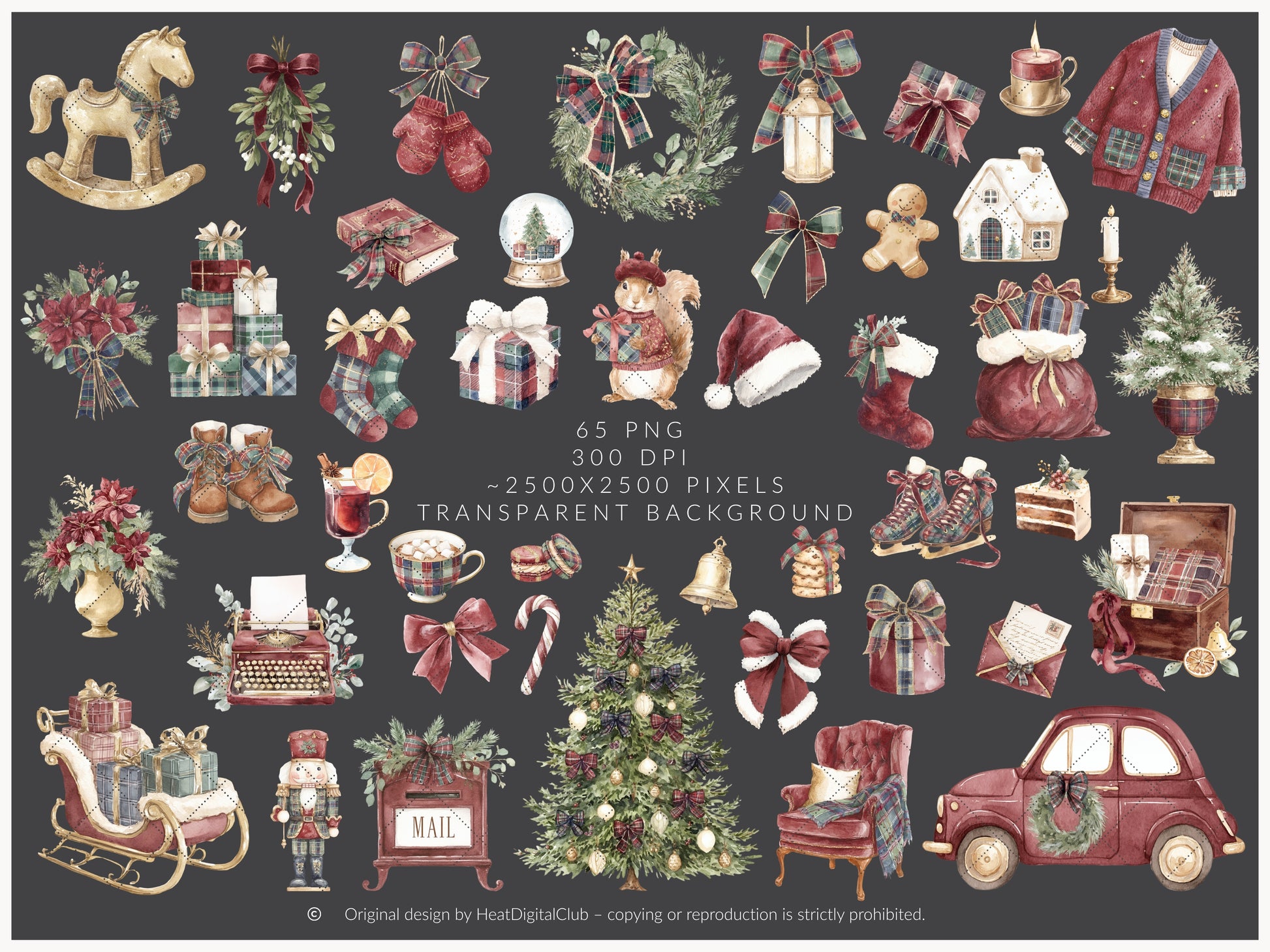 Bring your story to life with the Velvet Noël clipart set — a curated selection of watercolor illustrations designed for creative freedom and visual charm. Perfect for everything from digital stickers to paper goods.
