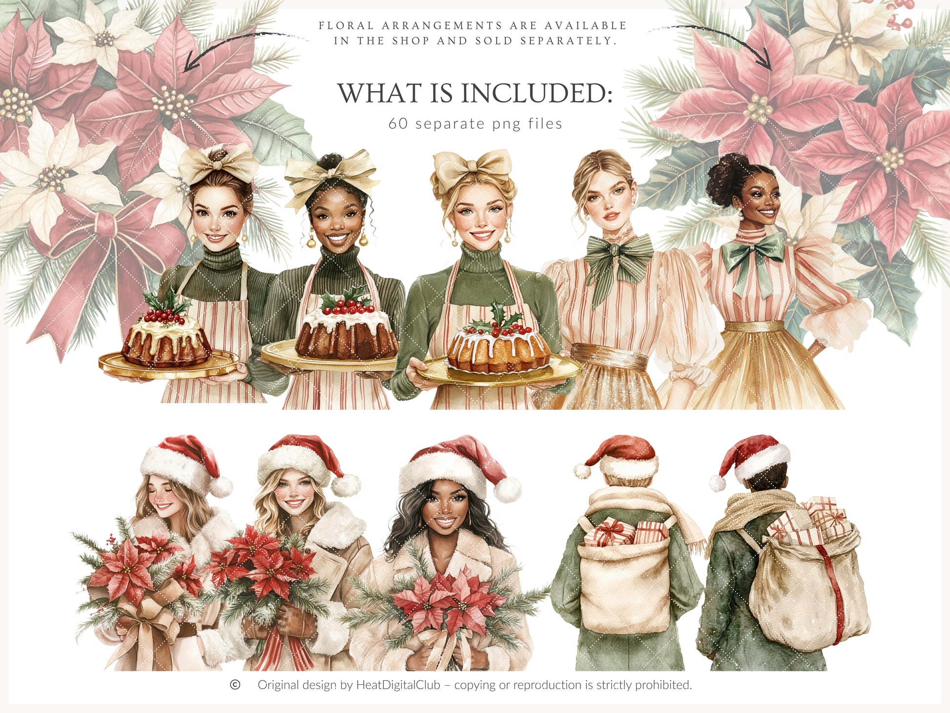 Warm Holidays - Floral Arrangements, Winter Clipart, Christmas, Poinsettia | 20 PNG