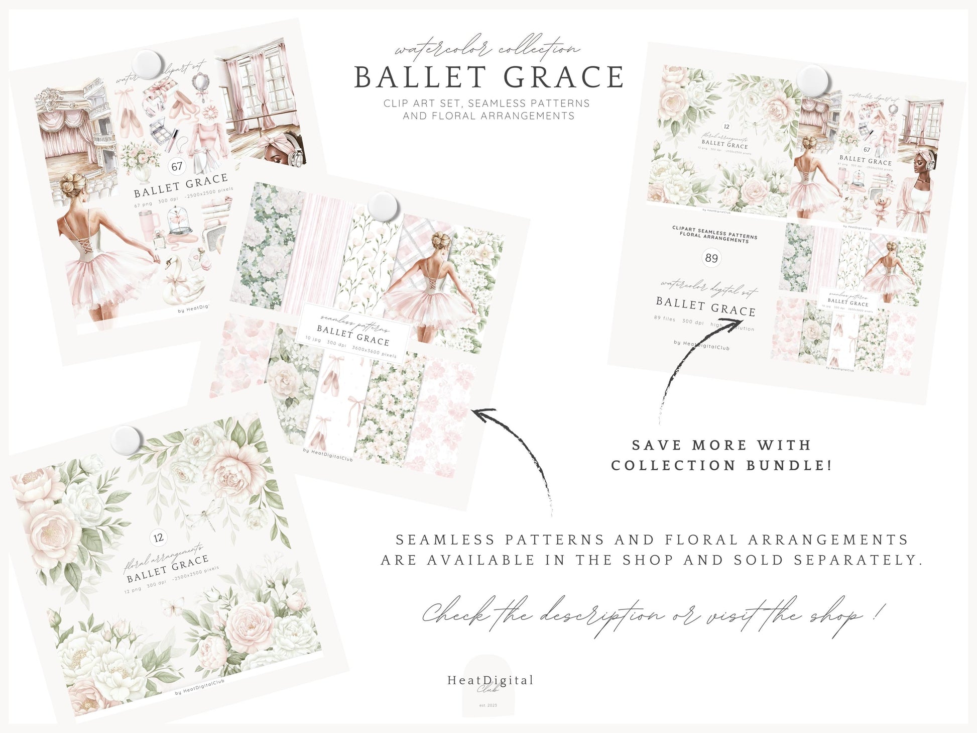 • You can purchase the clipart, patterns, and florals separately — or save by getting the full collection bundle.