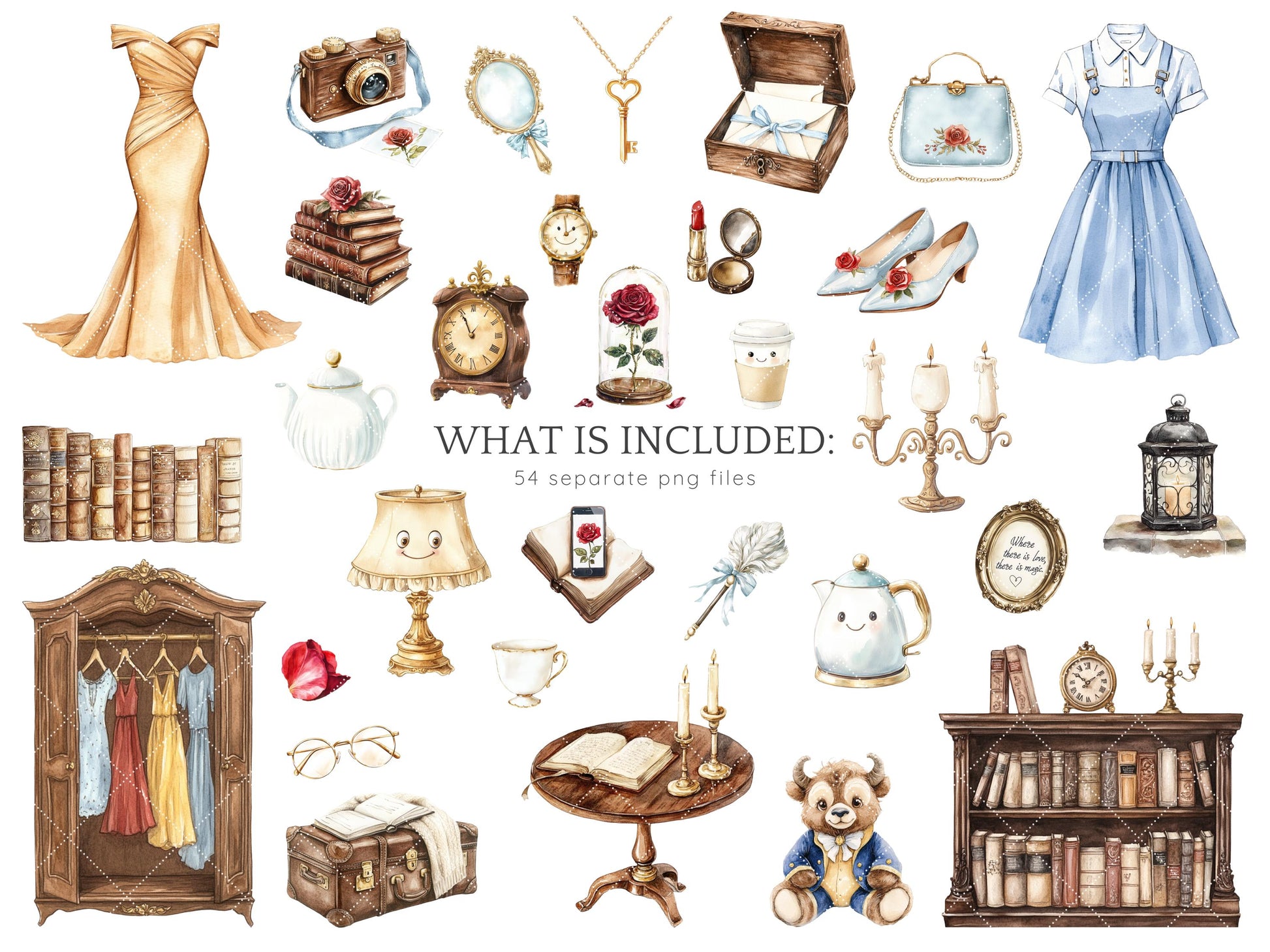 Belle's Modern Tale - Beauty and the Beast, Fairytale Clipart | 54 PNG