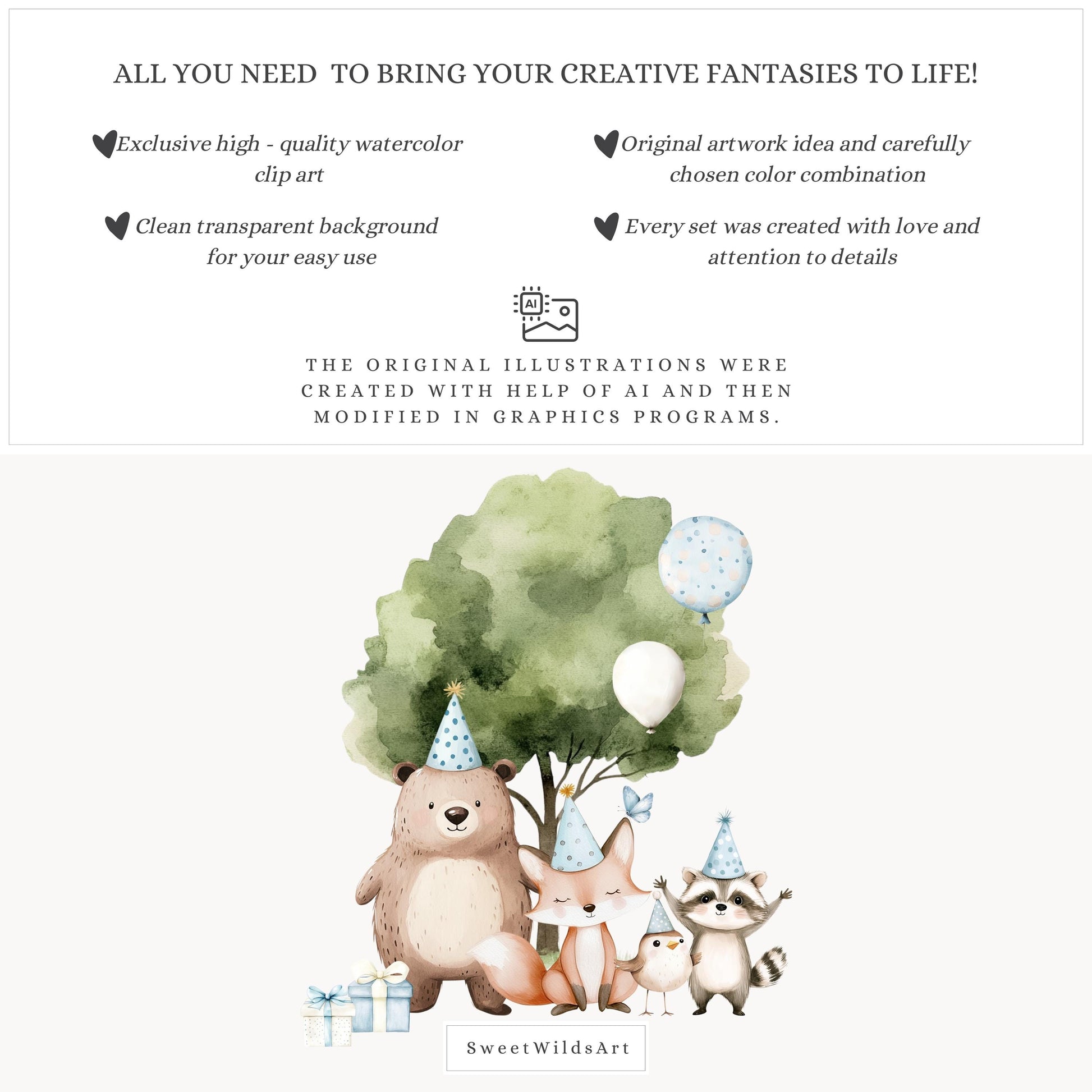 Bring your story to life with the Birthday Friends clipart set — a curated selection of watercolor illustrations designed for creative freedom and visual charm. Perfect for everything from digital stickers to paper goods.