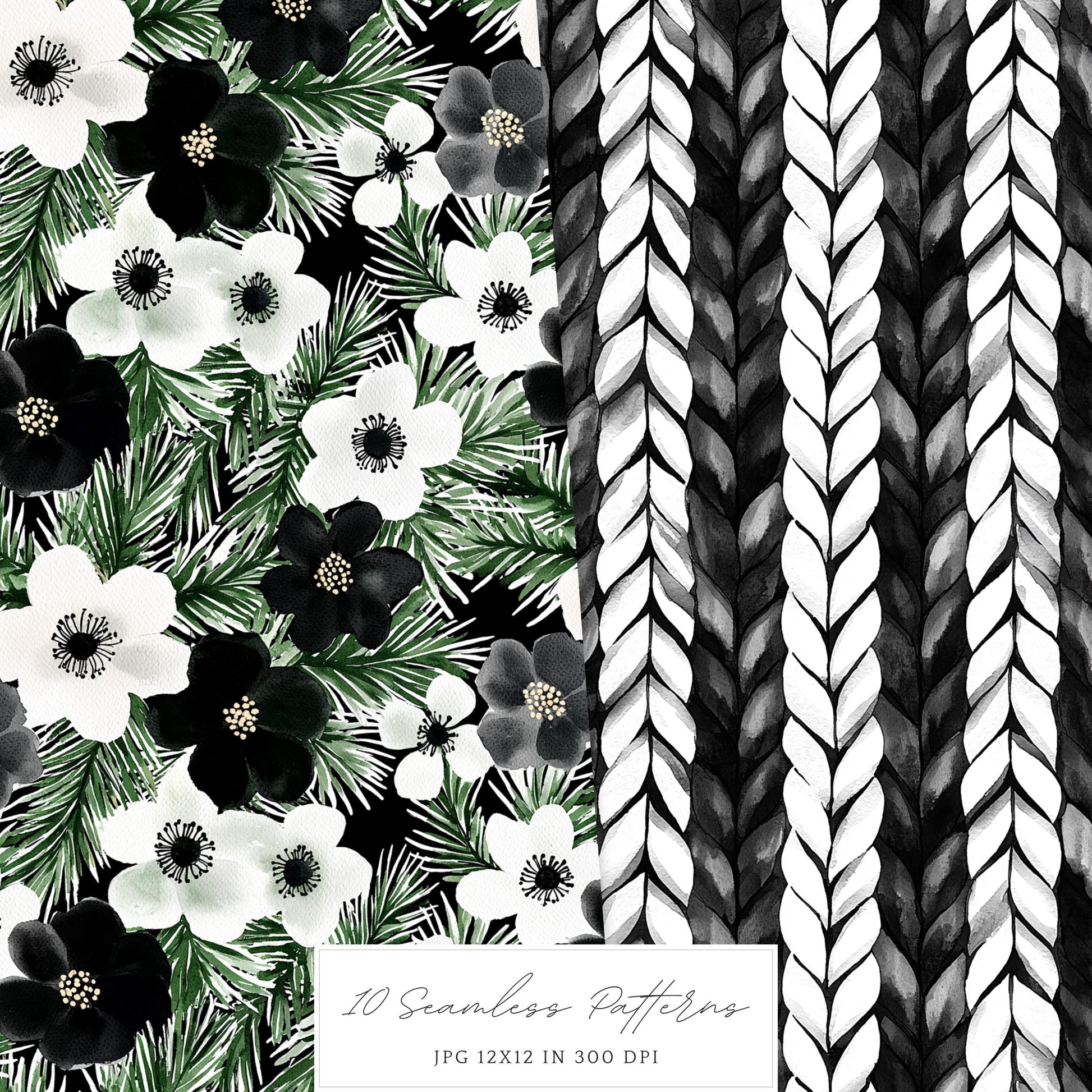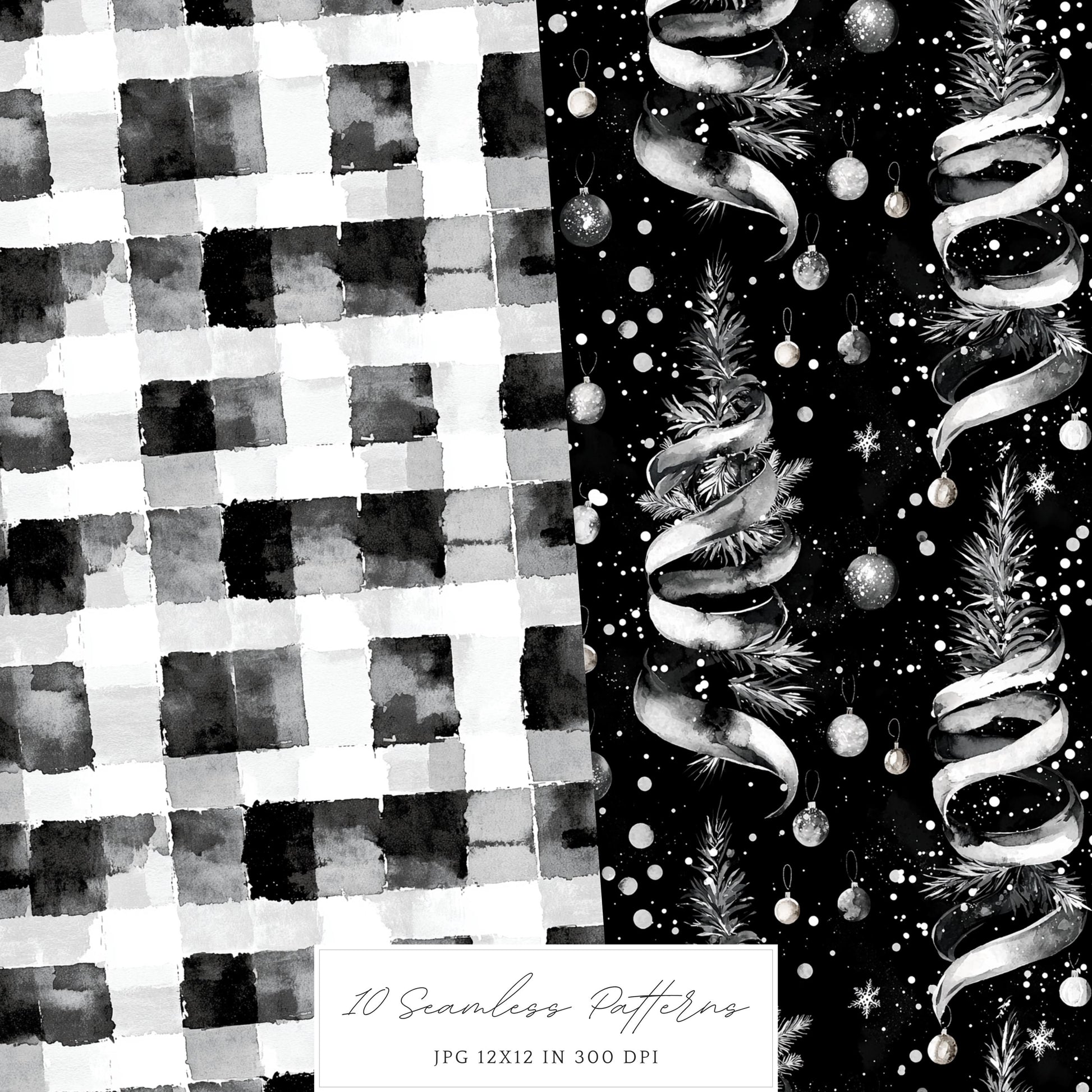 Add elegance and character with the Black and White Holidays seamless pattern collection — a versatile mix of timeless watercolor designs created to flow beautifully across any surface.
