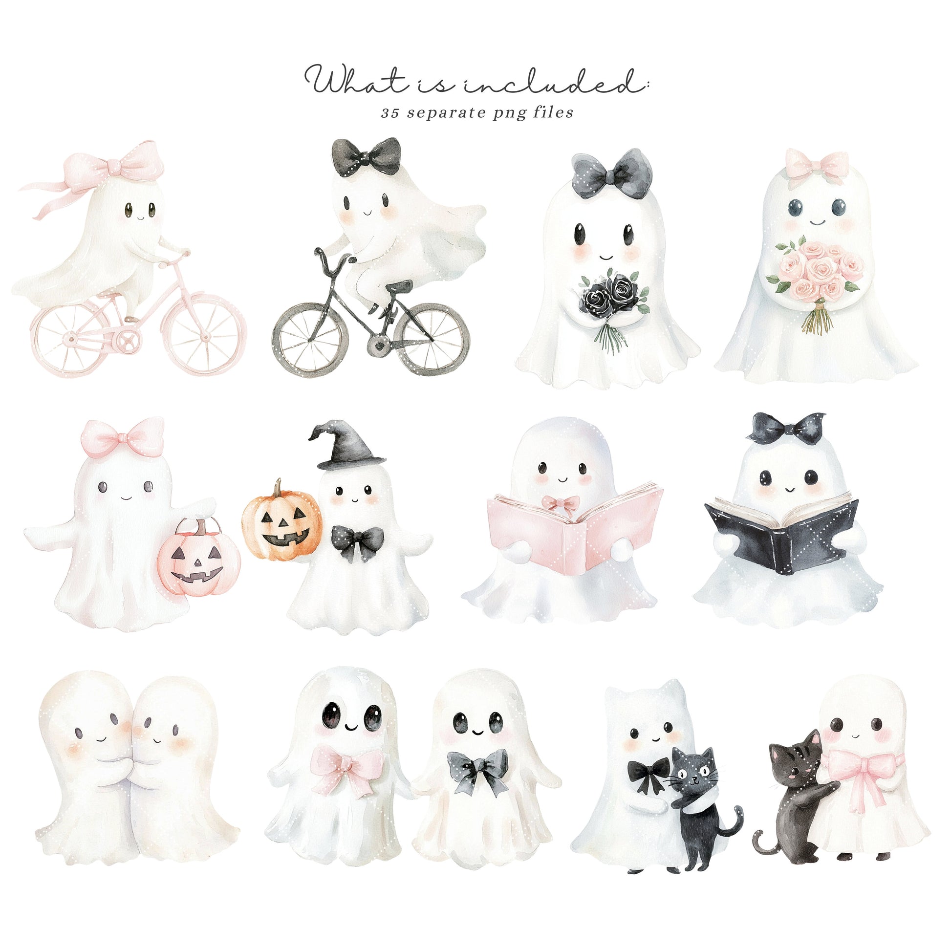 Ghostly Cuties - Cute Halloween Clipart, Spooky Ghosts, Pumpkin, Kids | 35 PNG