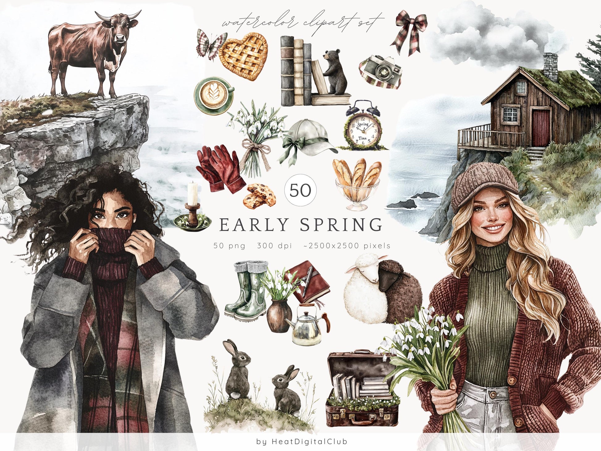 Early Spring - Collection Bundle, Gloomy Cozy Clipart | 72 PNG/JPEG