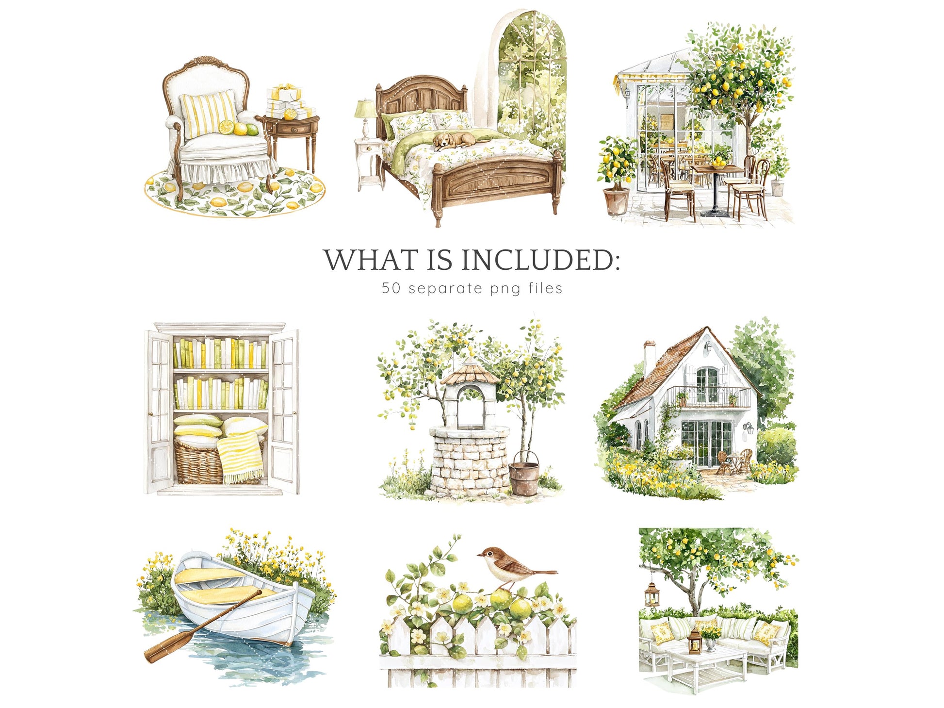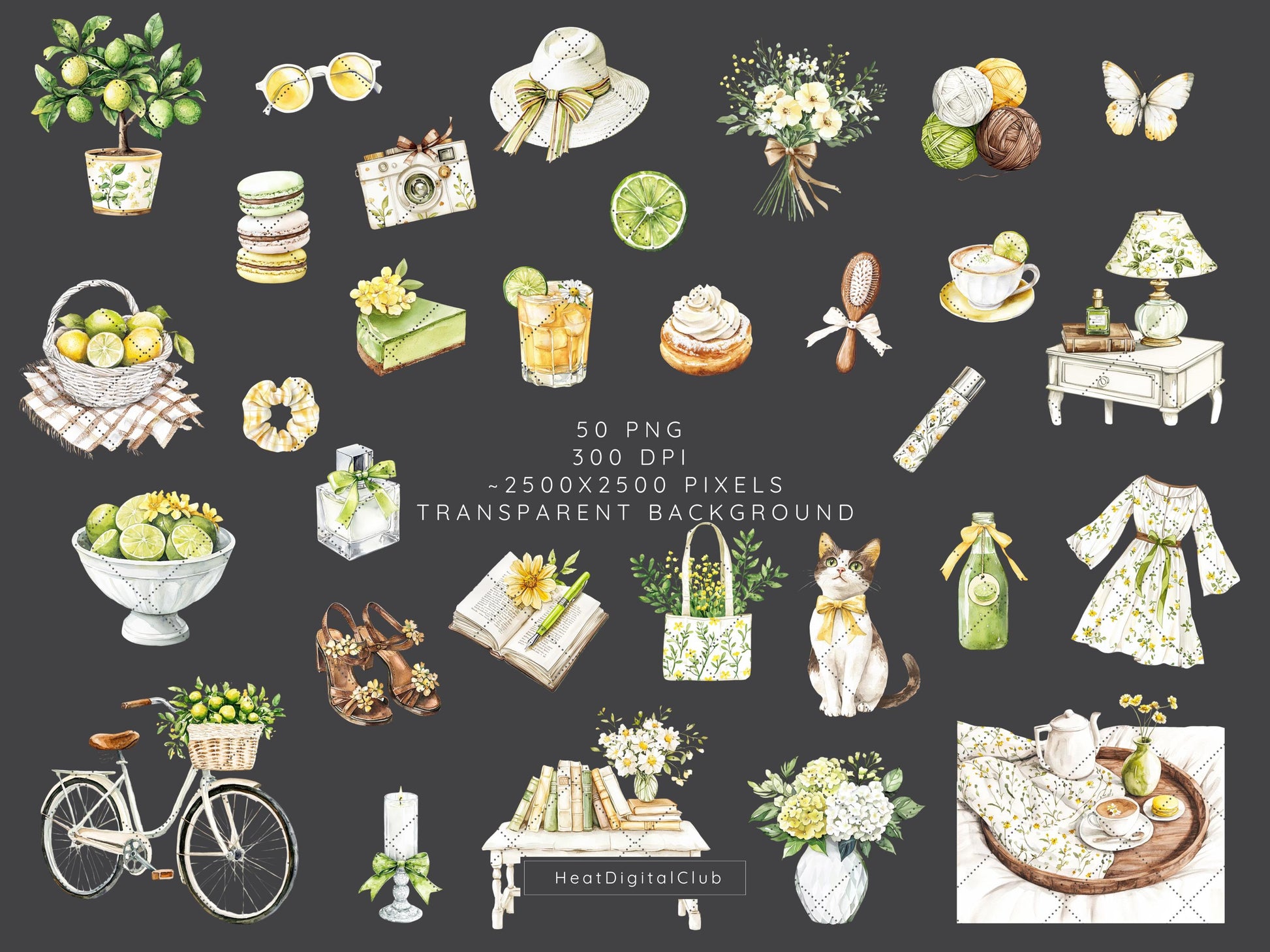 Fresh Essence - Clipart, Cozy Spring, Floral, Citrus | 50 PNG