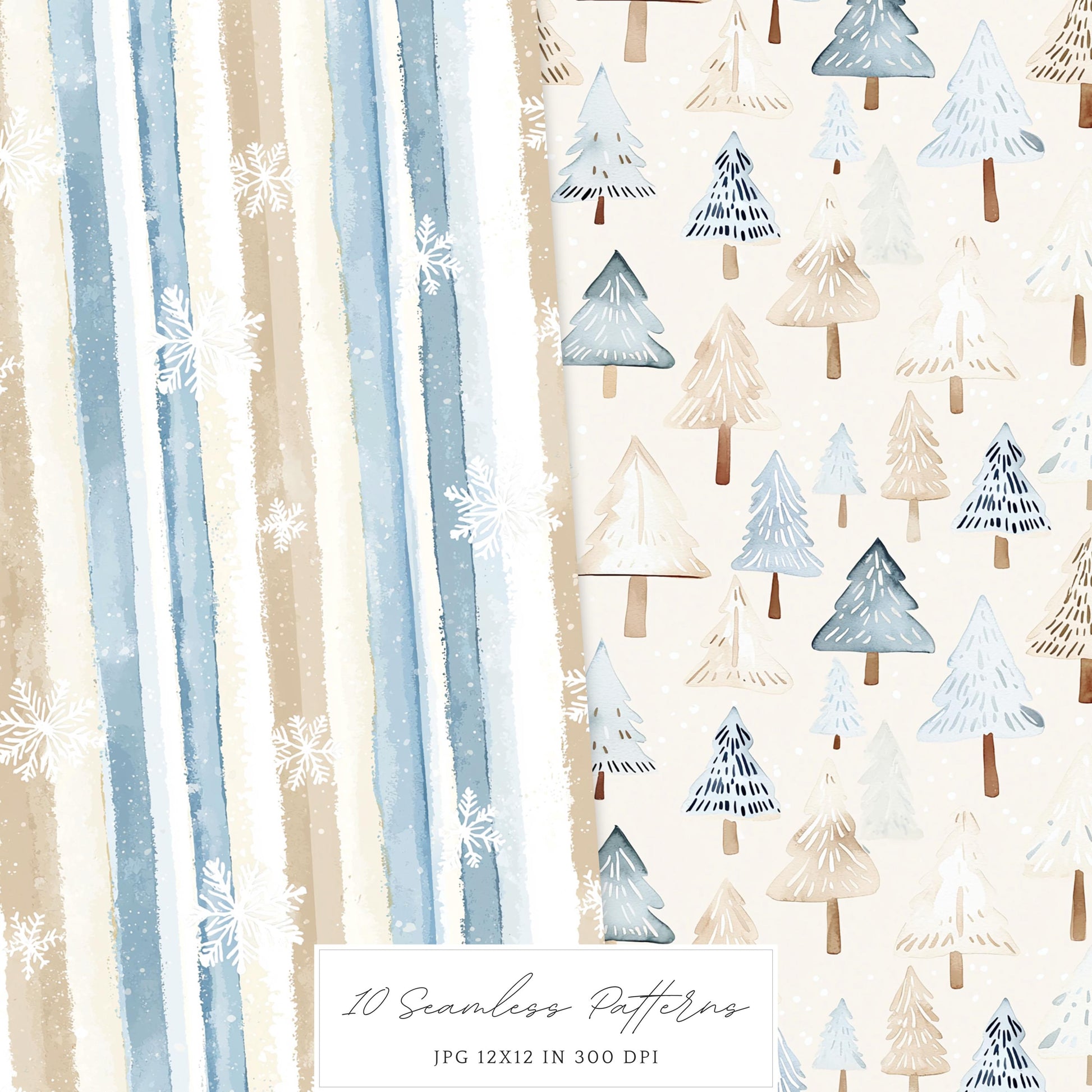 Add elegance and character with the Frosty Coziness seamless pattern collection — a versatile mix of timeless watercolor designs created to flow beautifully across any surface.