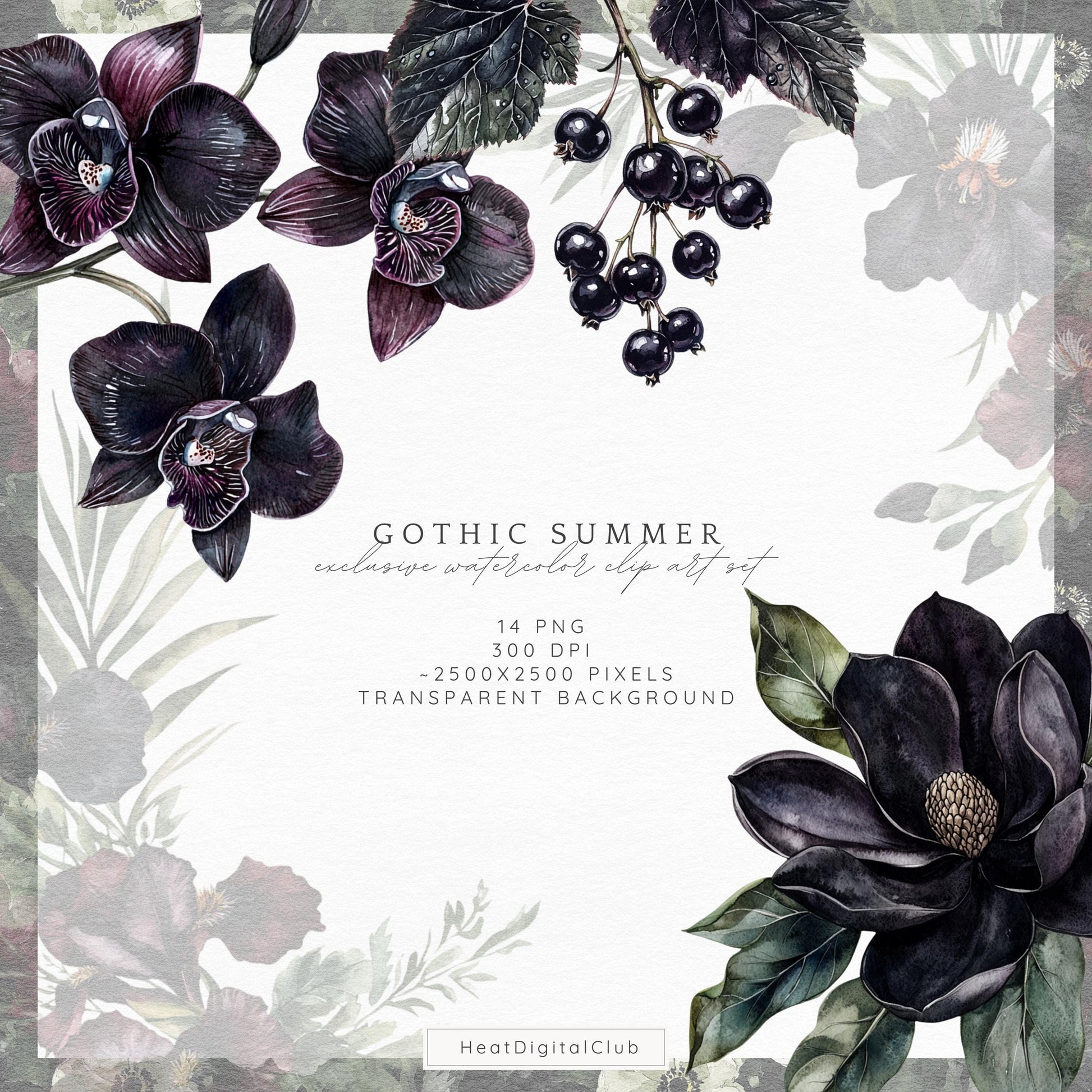 Capture delicate beauty with the Gothic Summer floral compositions — watercolor bouquets perfect for soft, romantic projects.