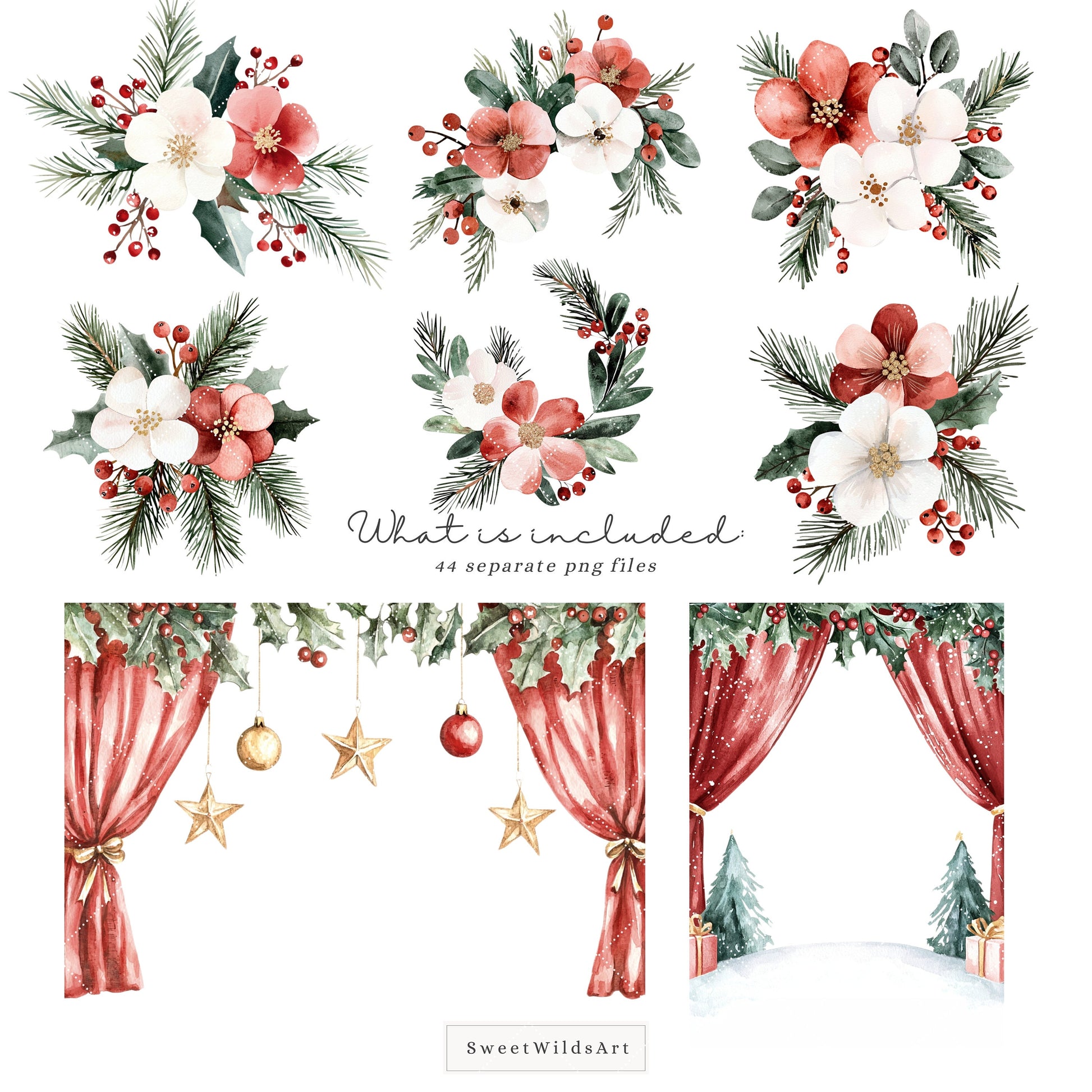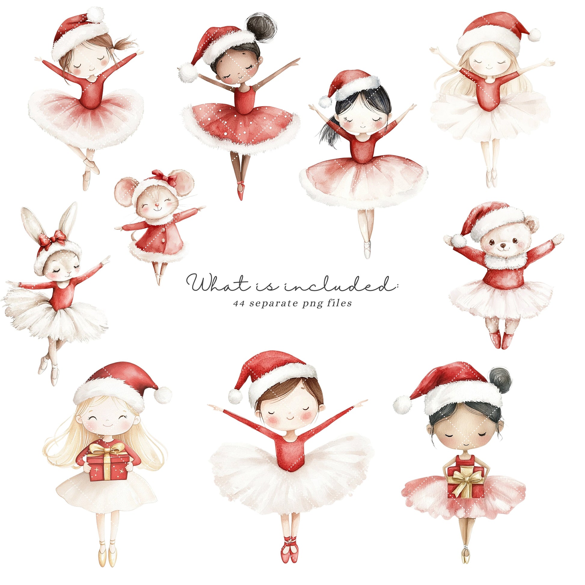 Holiday Ballerina - Cute Xmas Ballet, Christmas Flowers Clipart, Winter Ballerina | 44 PNG