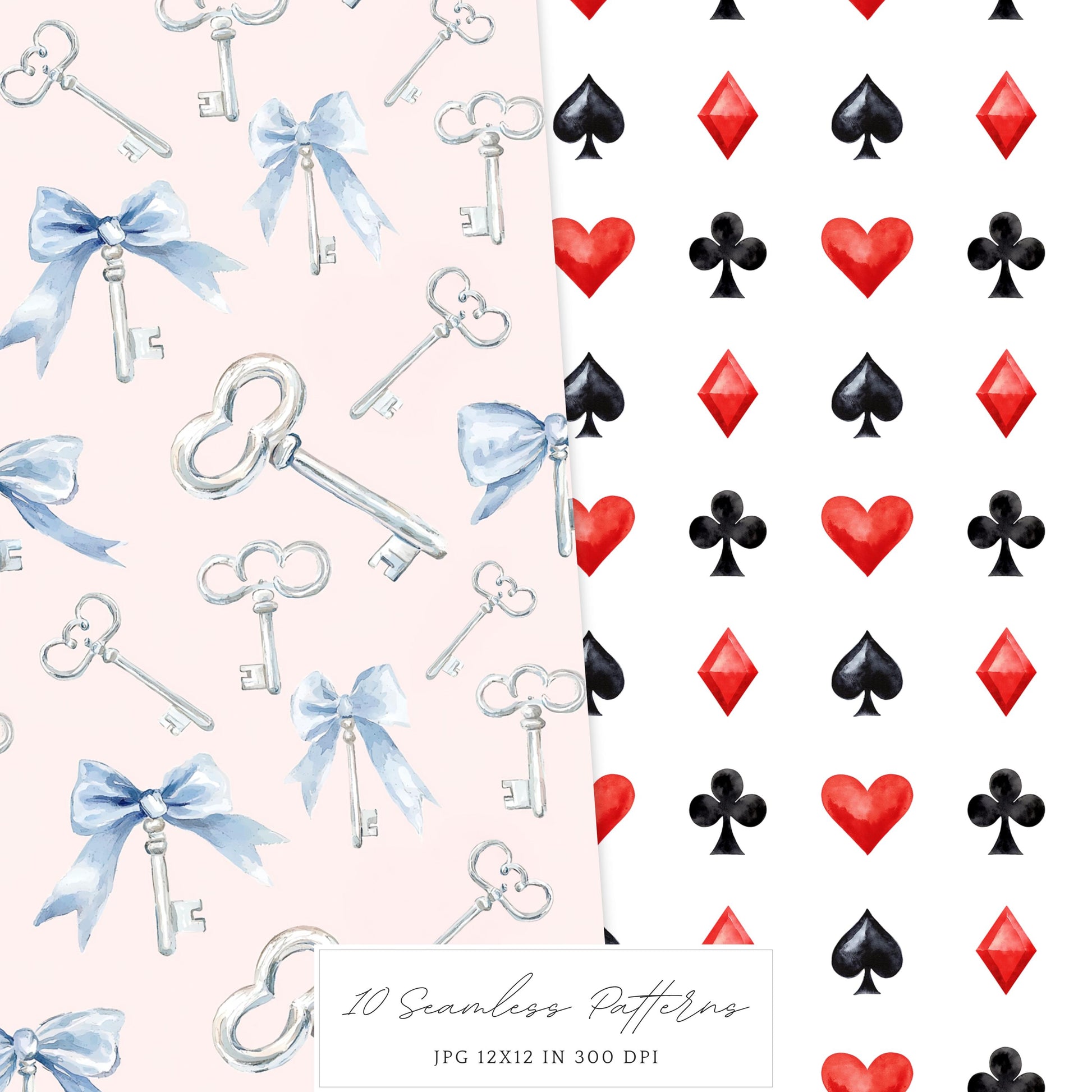 Modern Alice - Seamless Patterns, Fantasy, Floral, Roses | 10 JPEG