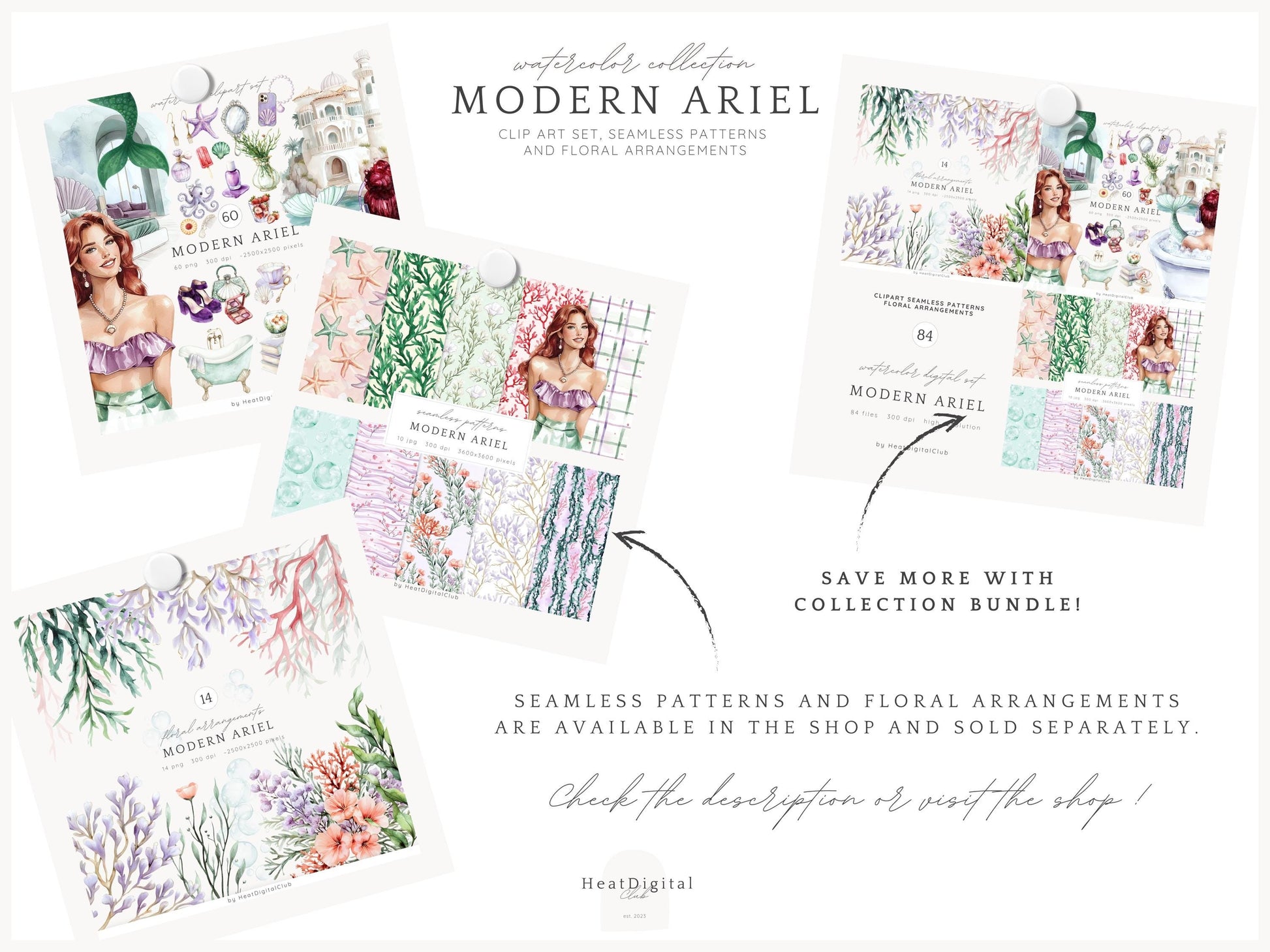 • You can purchase the clipart, patterns, and florals separately — or save by getting the full collection bundle.