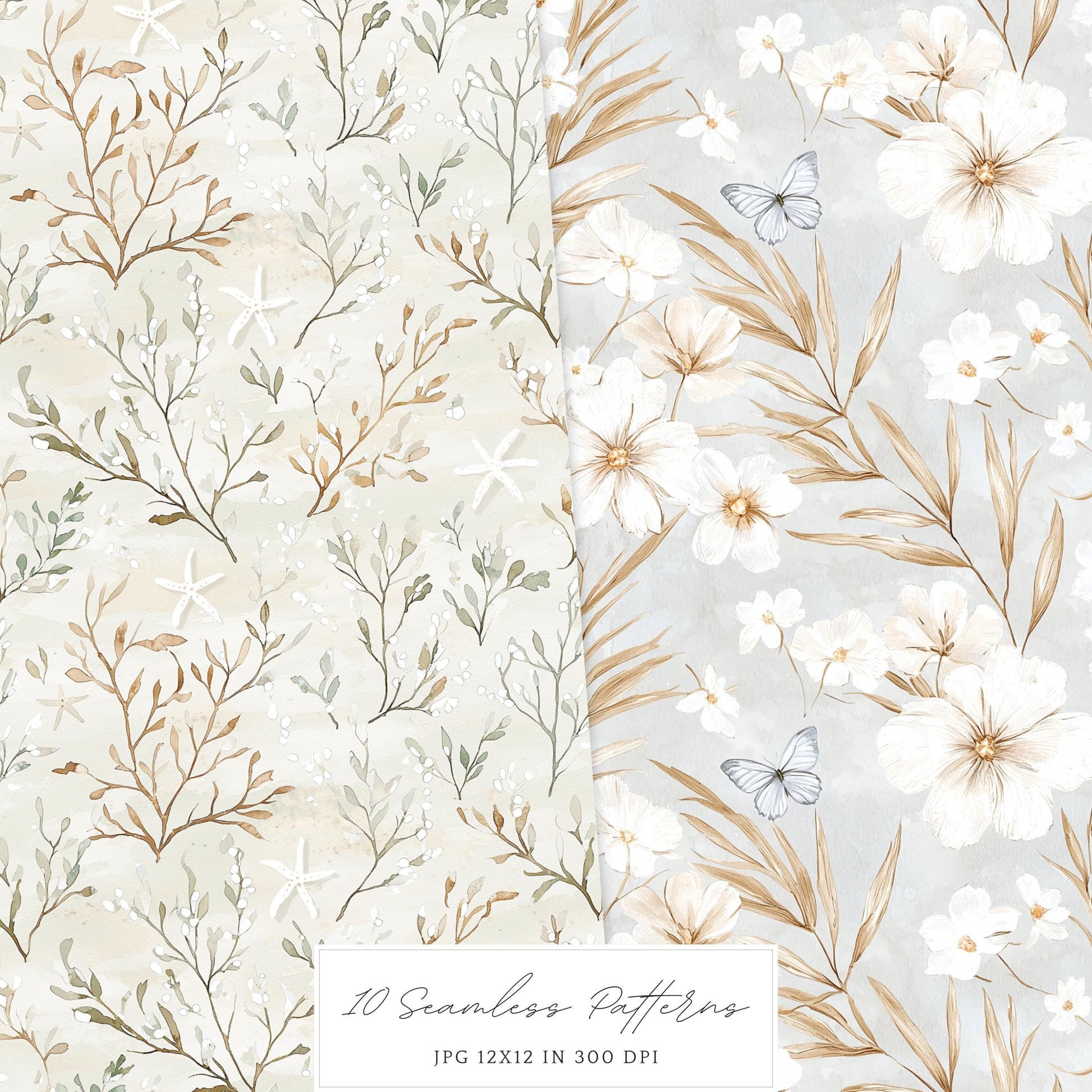 Ocean Breath - Seamless Patterns, Neutral Summer Beach | 10 JPEG