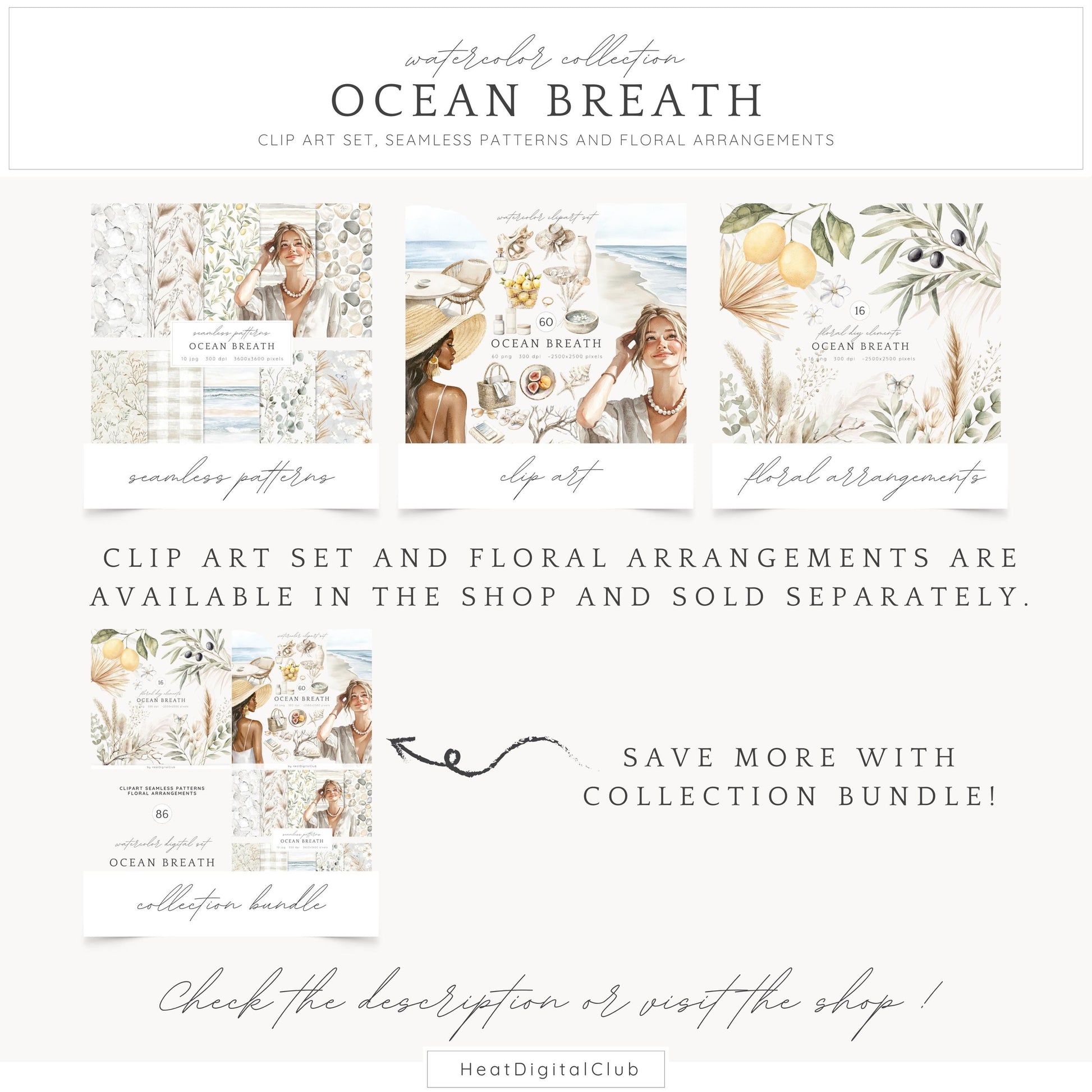 • You can purchase the clipart, patterns, and florals separately — or save by getting the full collection bundle.