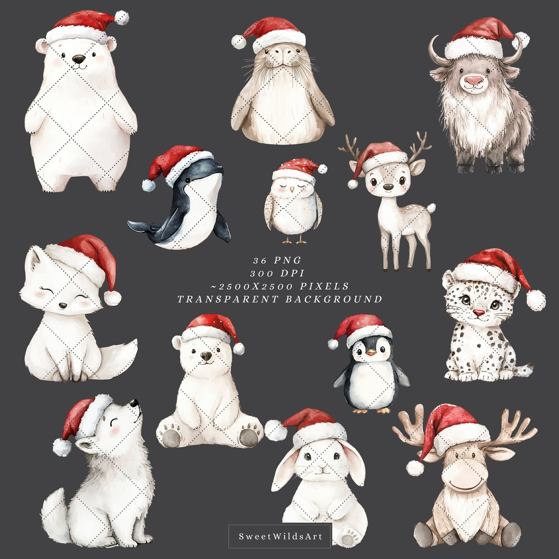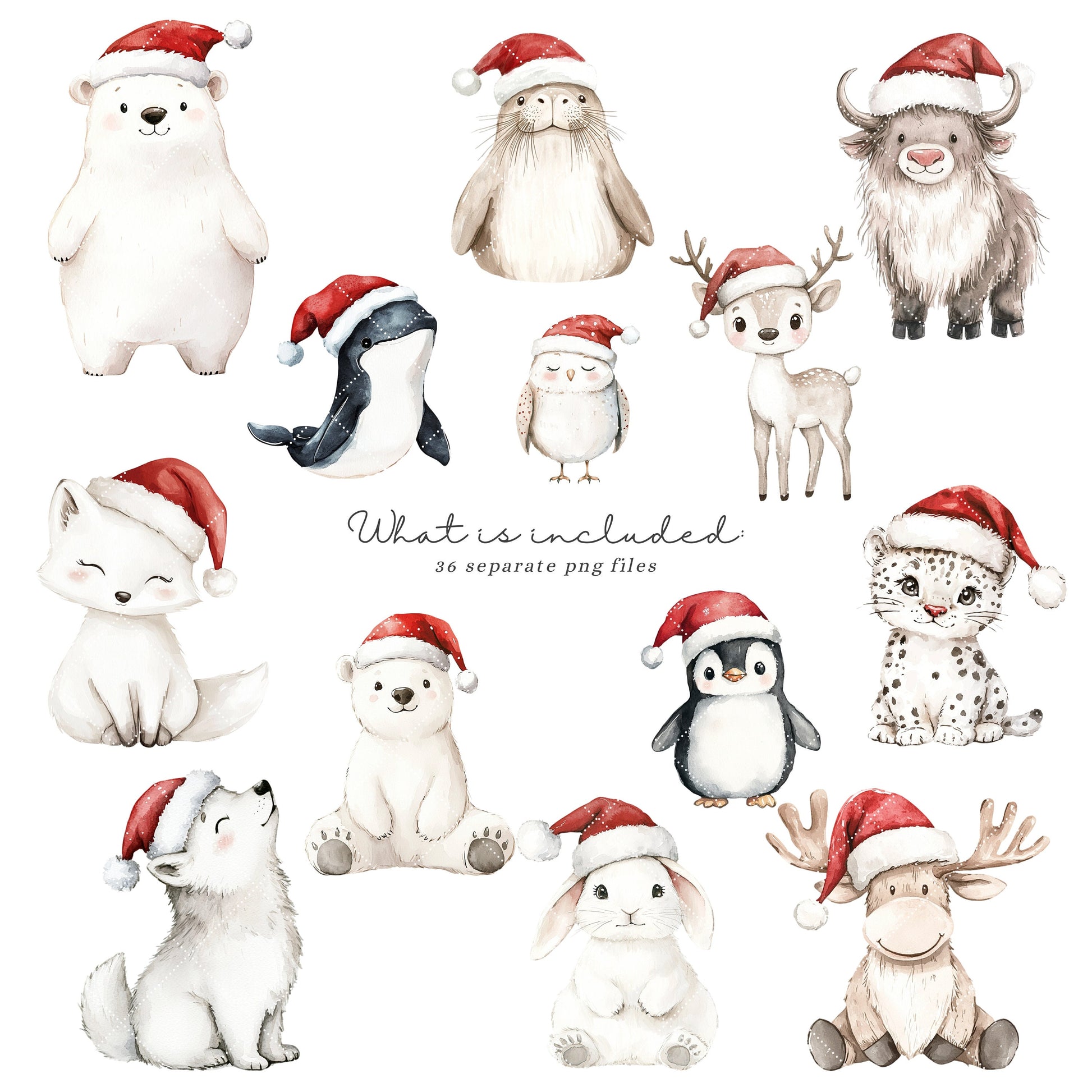Polar Friends - Cute Arctic Animals, Christmas Babies Clipart, Winter | 36 PNG