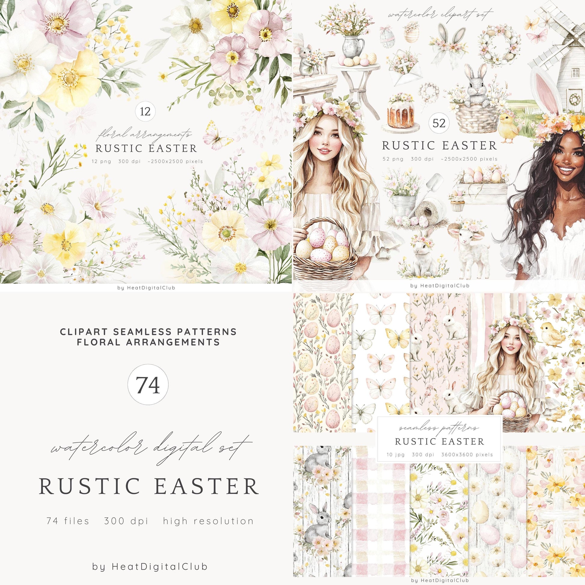 Rustic Easter - Collection Bundle, Pastel Clipart, Bunny, Spring | 74 PNG/JPEG