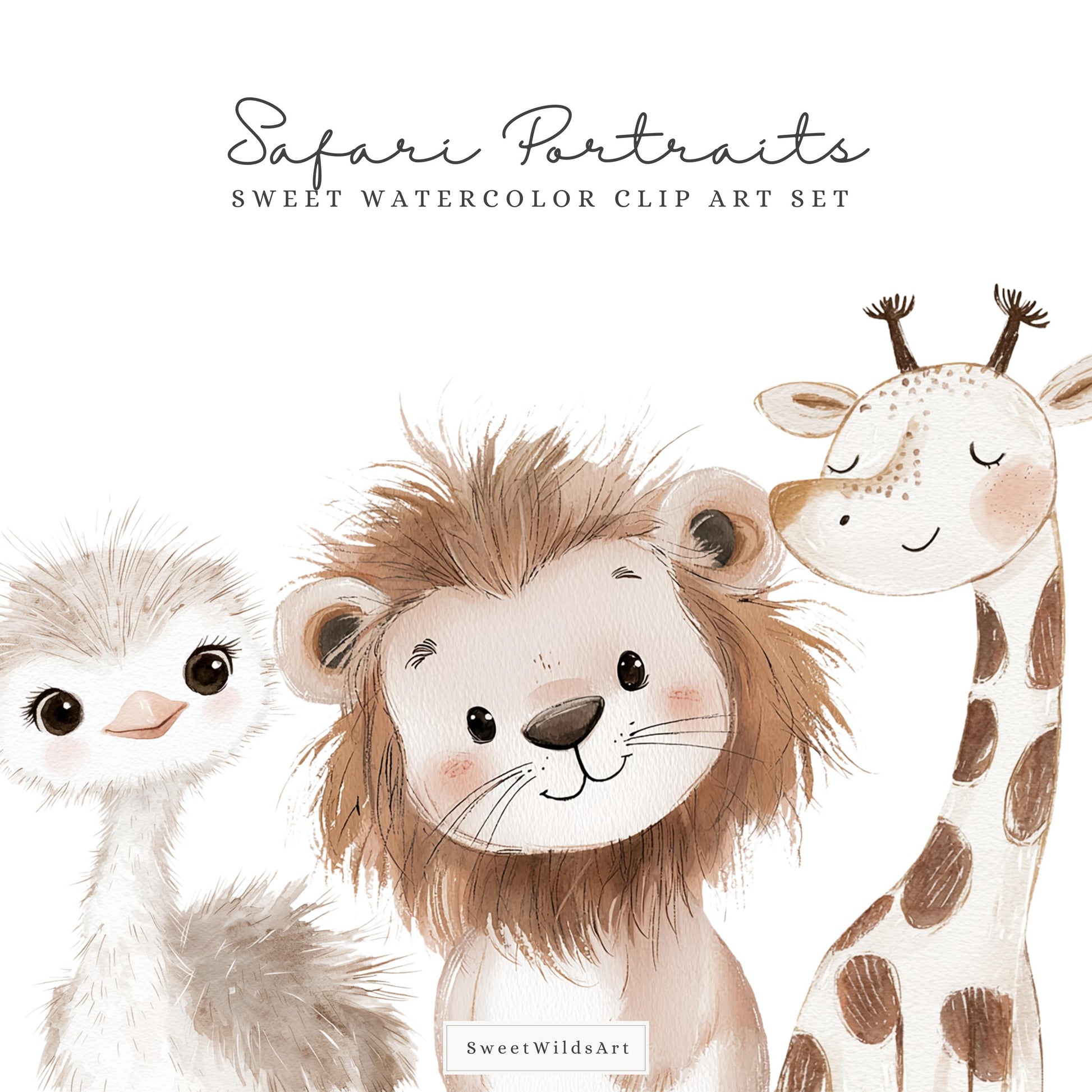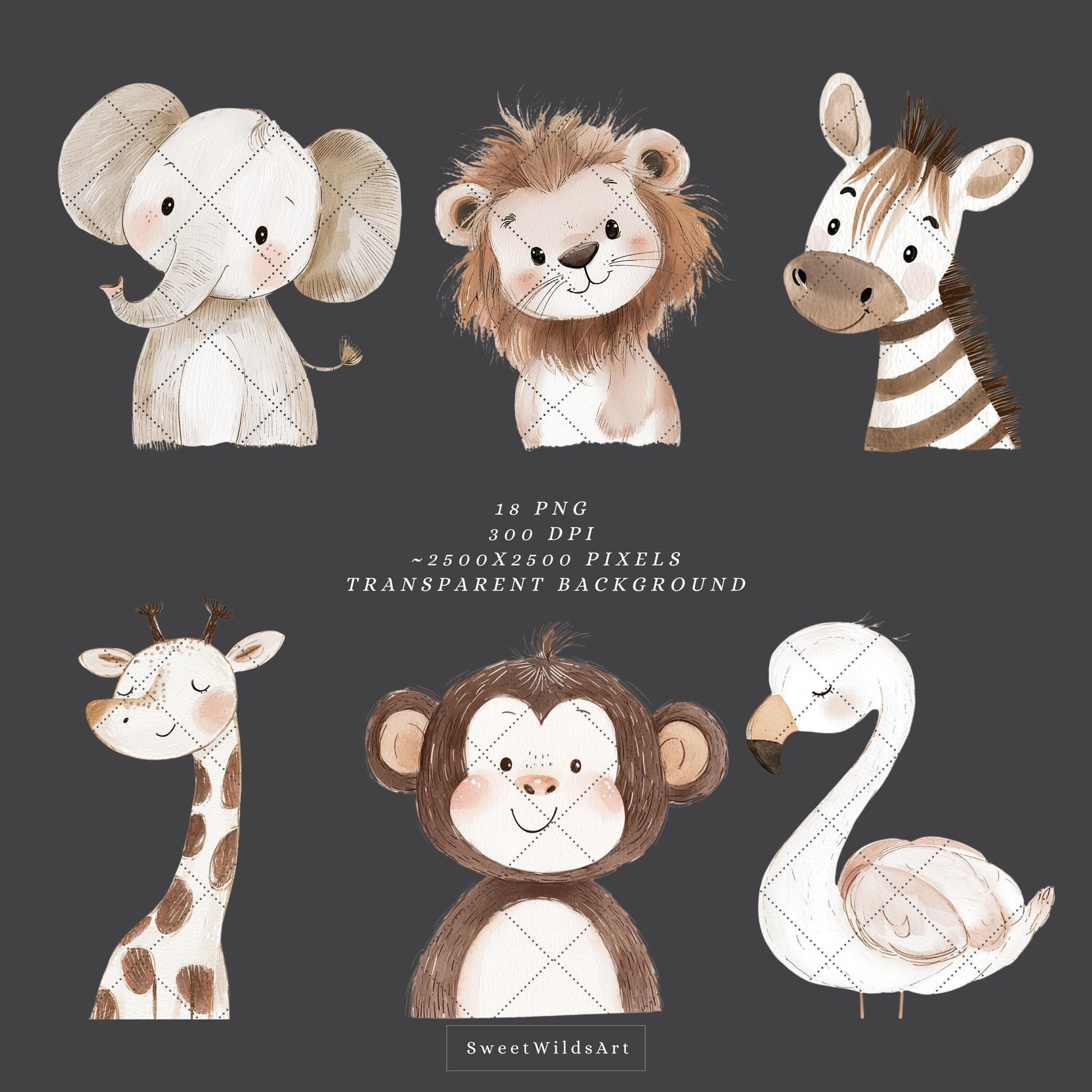 Safari Portraits - Cute Animals Clipart, Baby Shower, Nursery, Boho Tropical | 18 PNG
