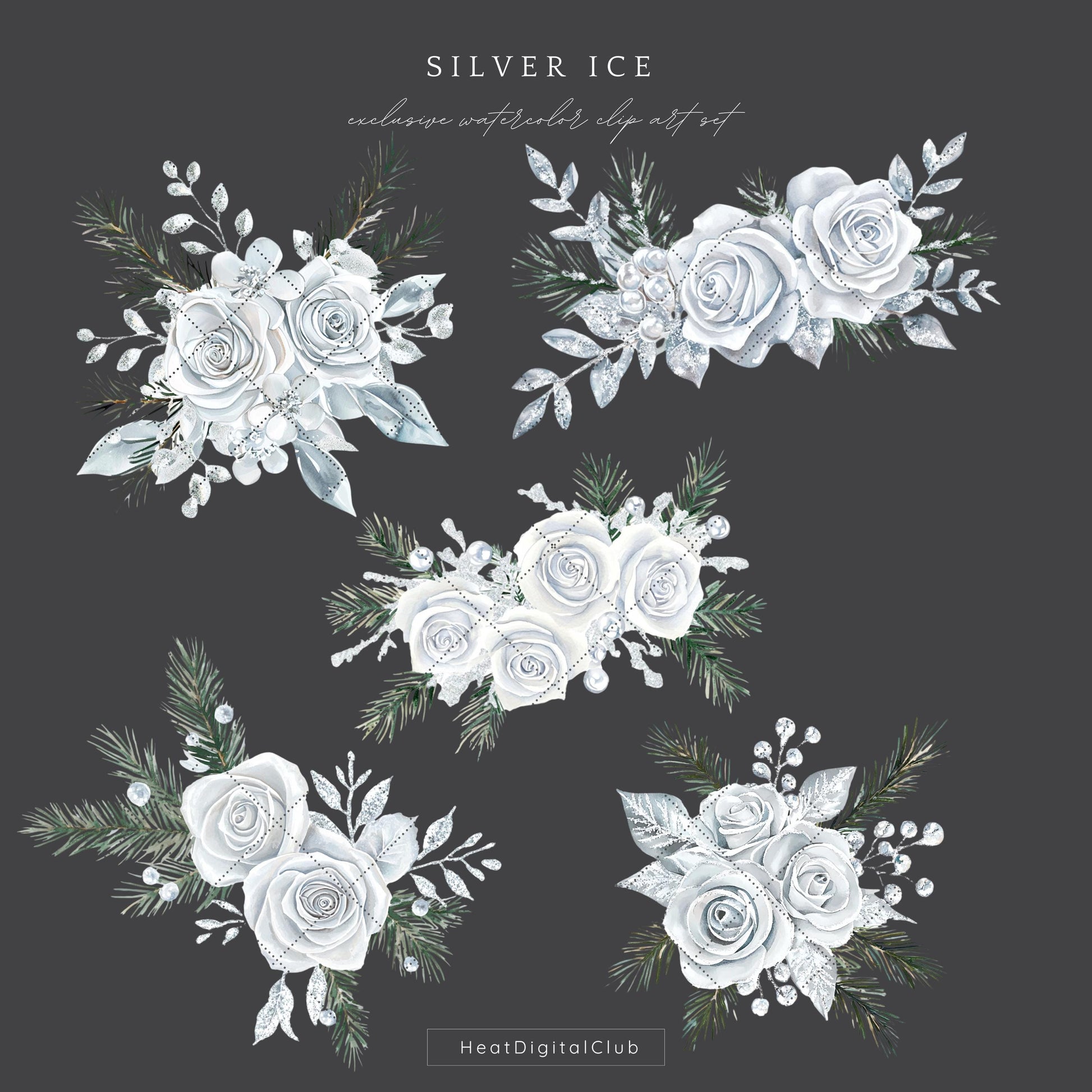 Silver Ice - Floral Arrangement, Cozy Winter Roses Clipart, Christmas | 12 PNG