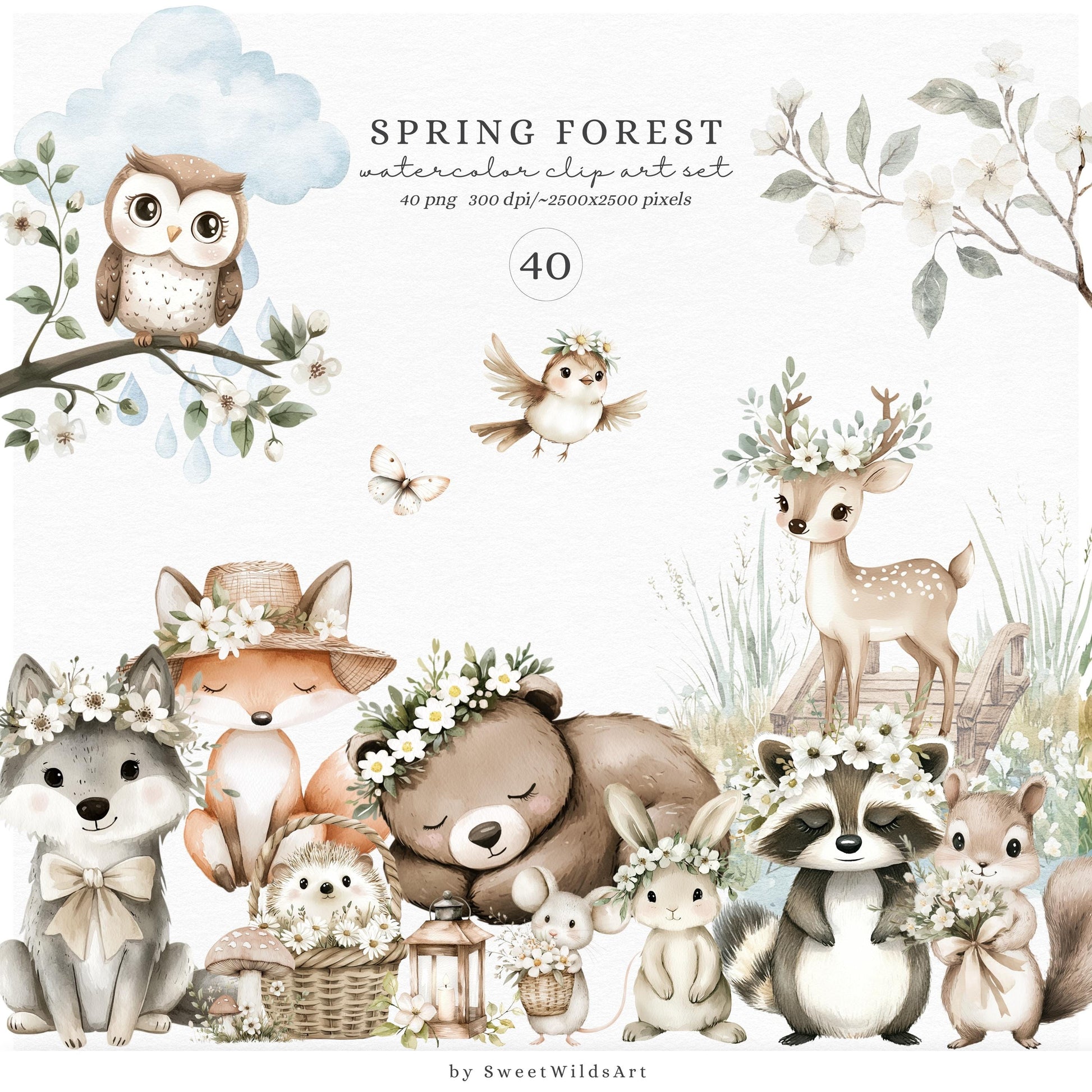 Spring Forest - Cute Woodland, Baby Animal Clipart, Baby Shower, Nursery | 40 PNG