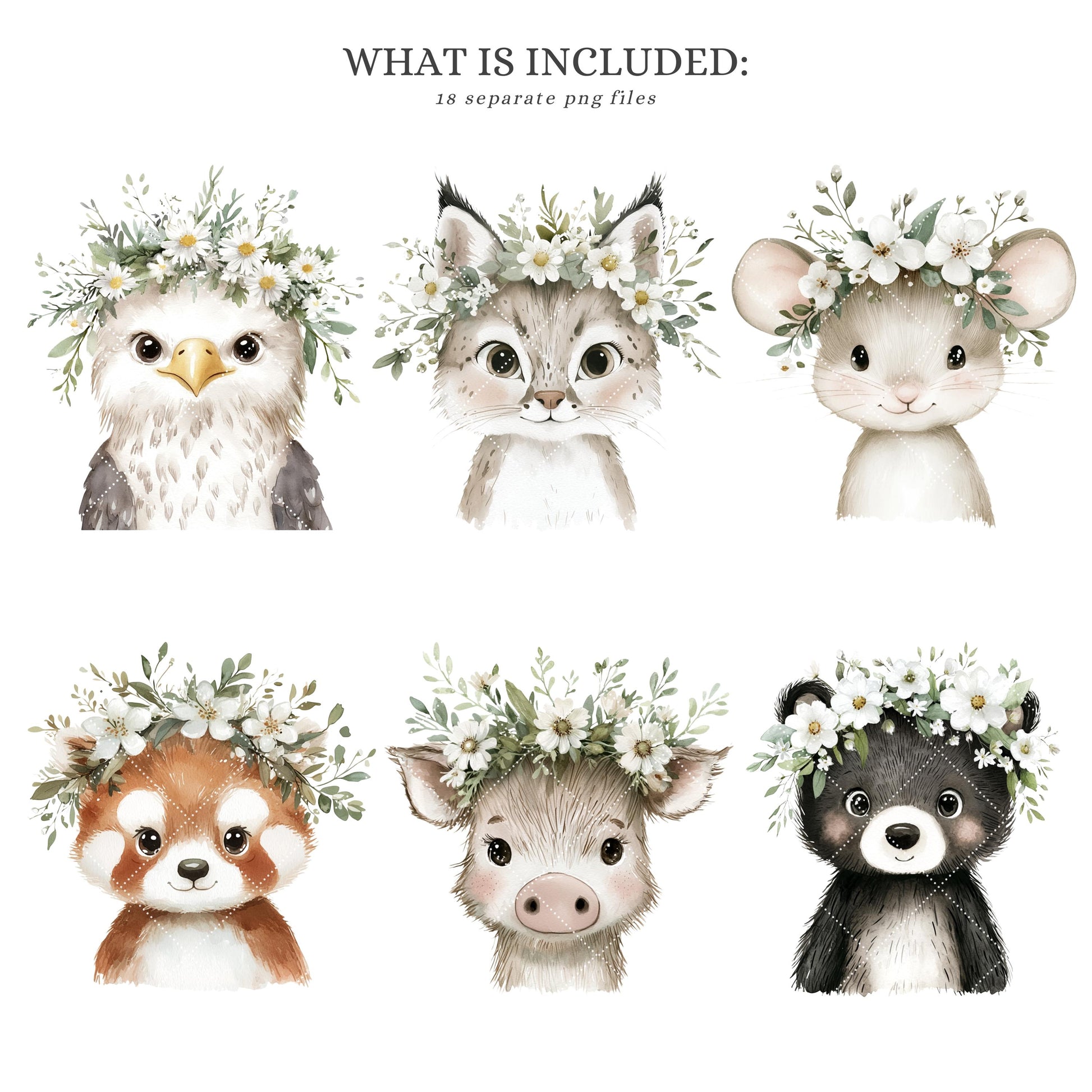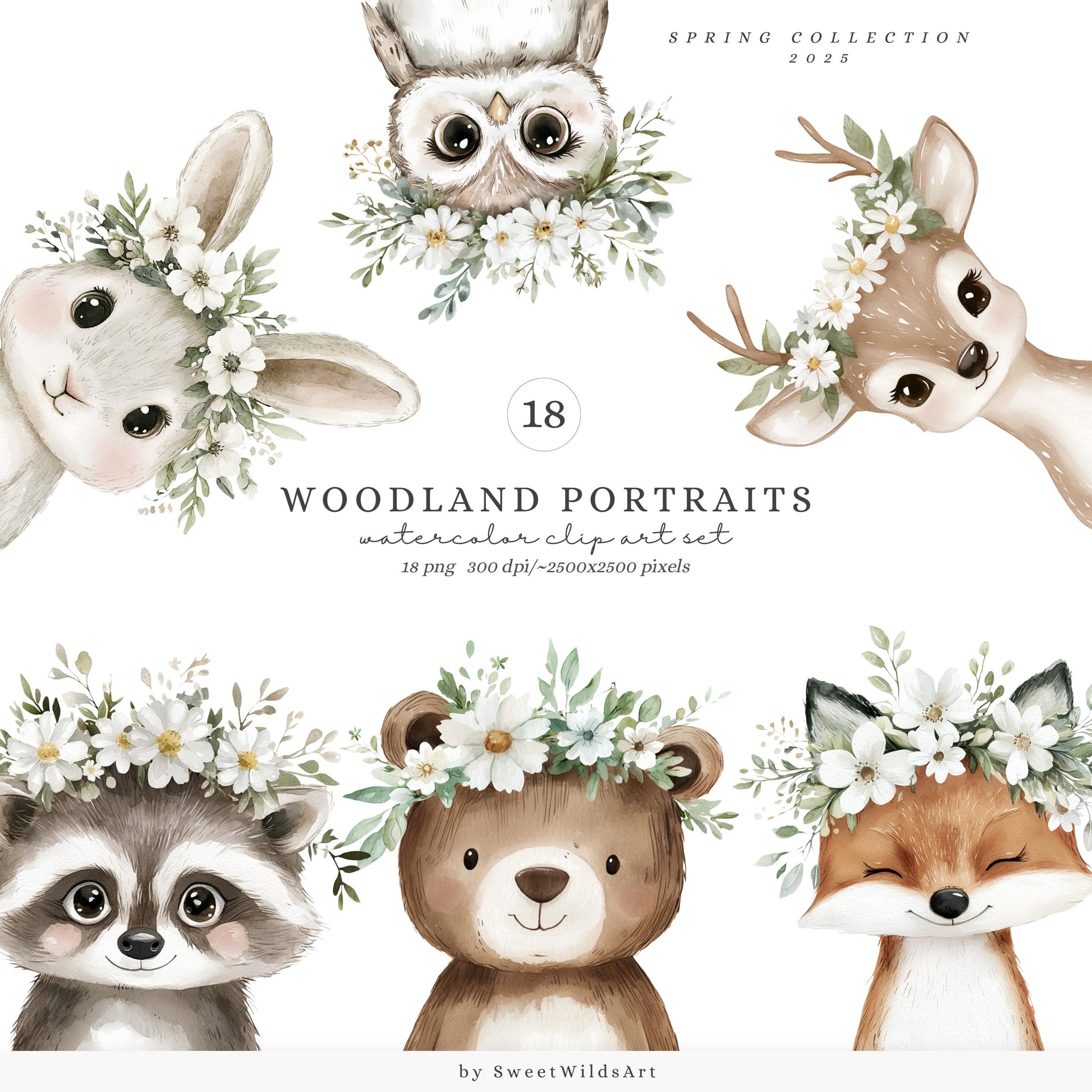 Woodland Portraits - Spring Cute Animals Clipart, Baby Shower, Nursery | 18 PNG