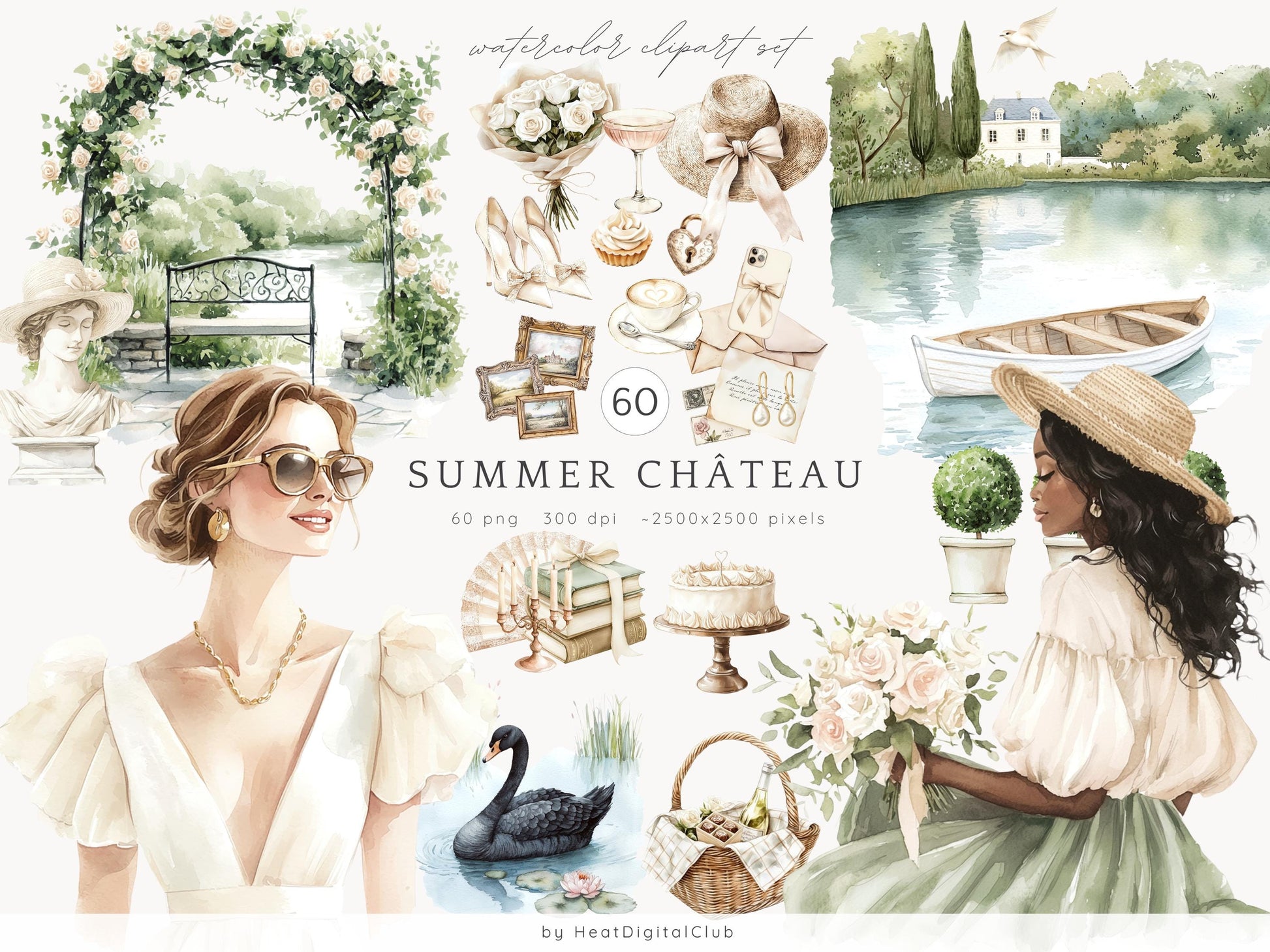 Summer Château - Elegant, French, Country Clipart Set | 60 PNG