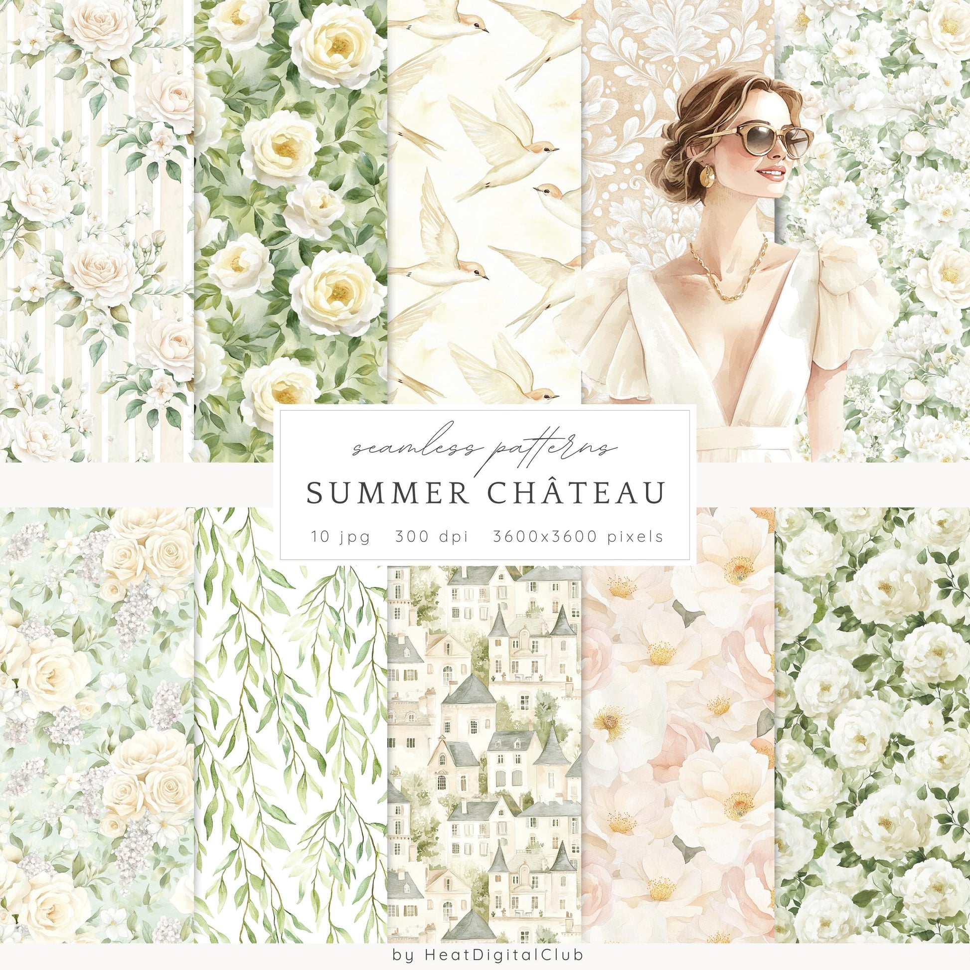 Summer Château - Seamless Patterns,French, Garden Pattern | 10 JPEG