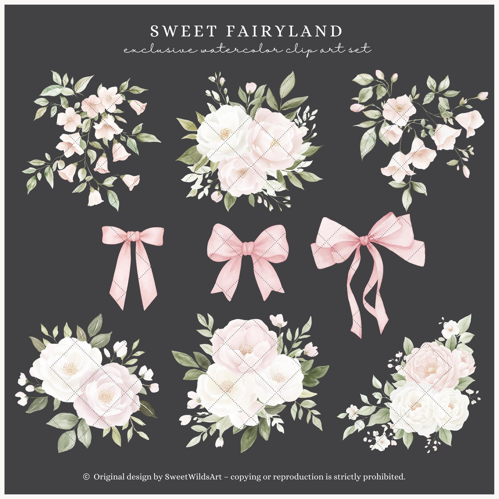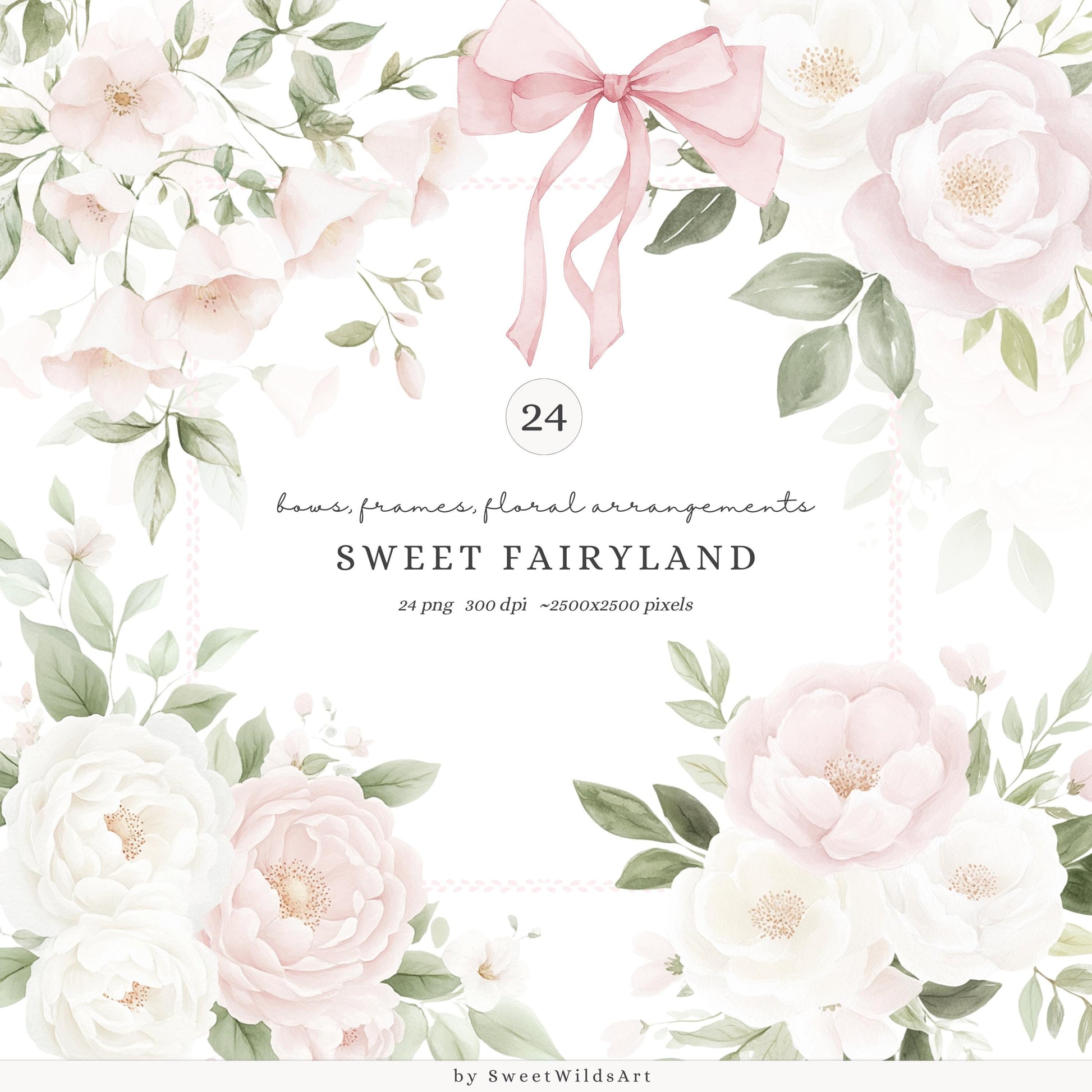 Capture delicate beauty with the Sweet Fairyland floral compositions — watercolor bouquets perfect for soft, romantic projects.