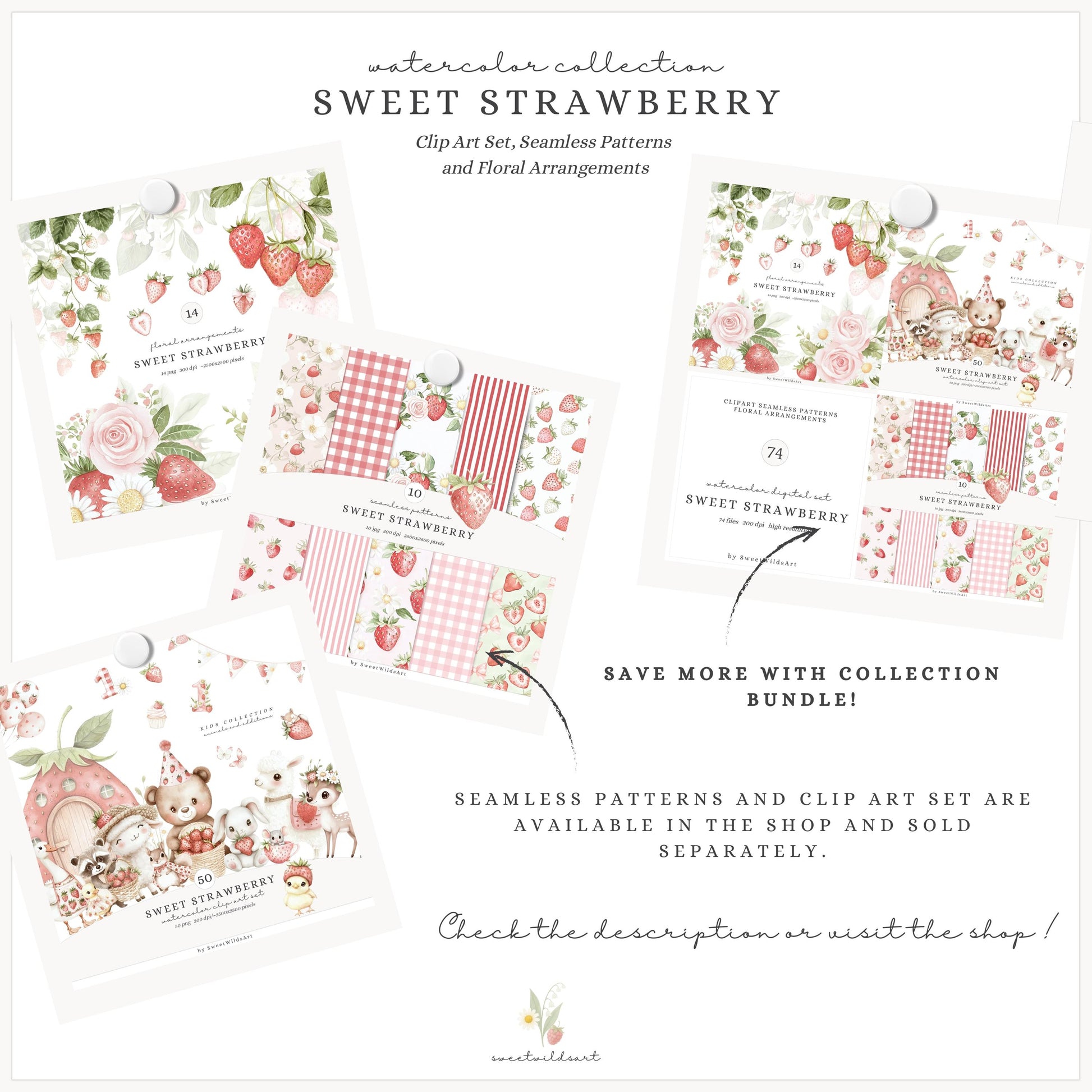 • You can purchase the clipart, patterns, and florals separately — or save by getting the full collection bundle.