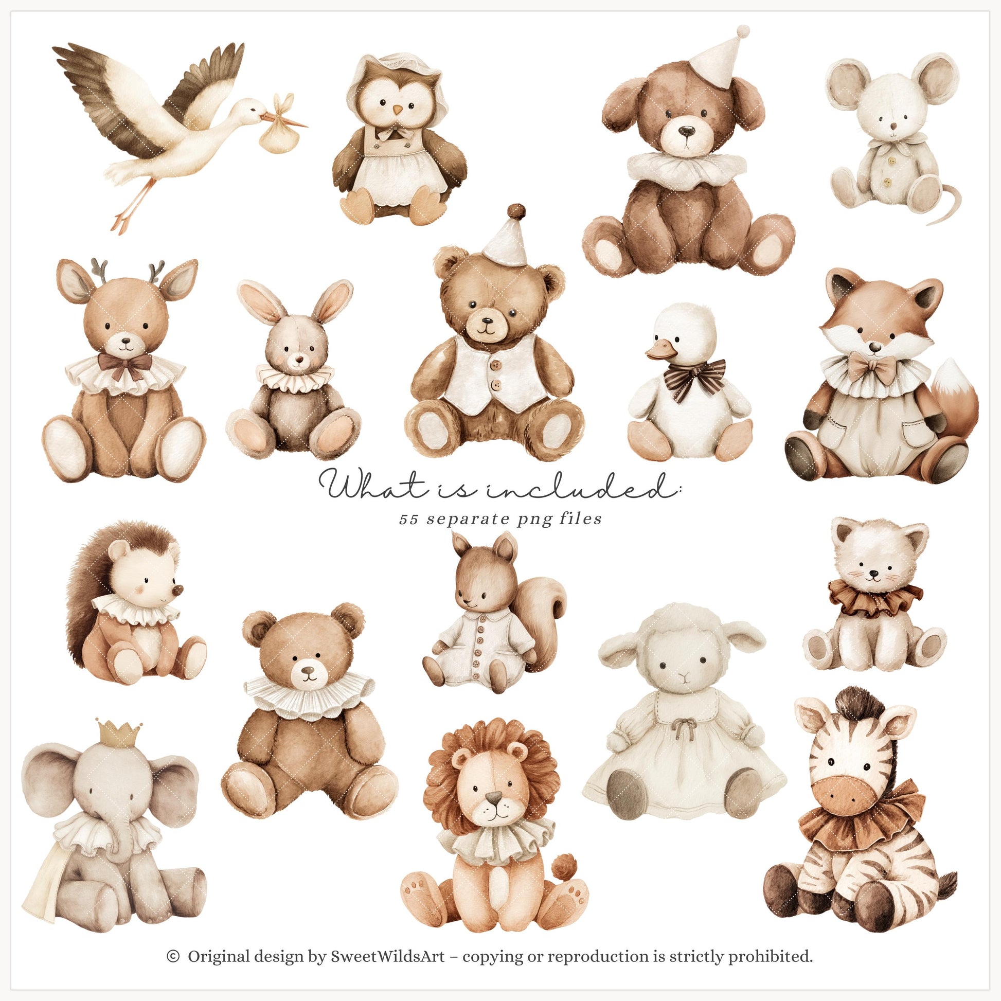 Tiny Moments - Plush Toys, Baby Animals Clipart, Nursery Illustrations | 55 PNG