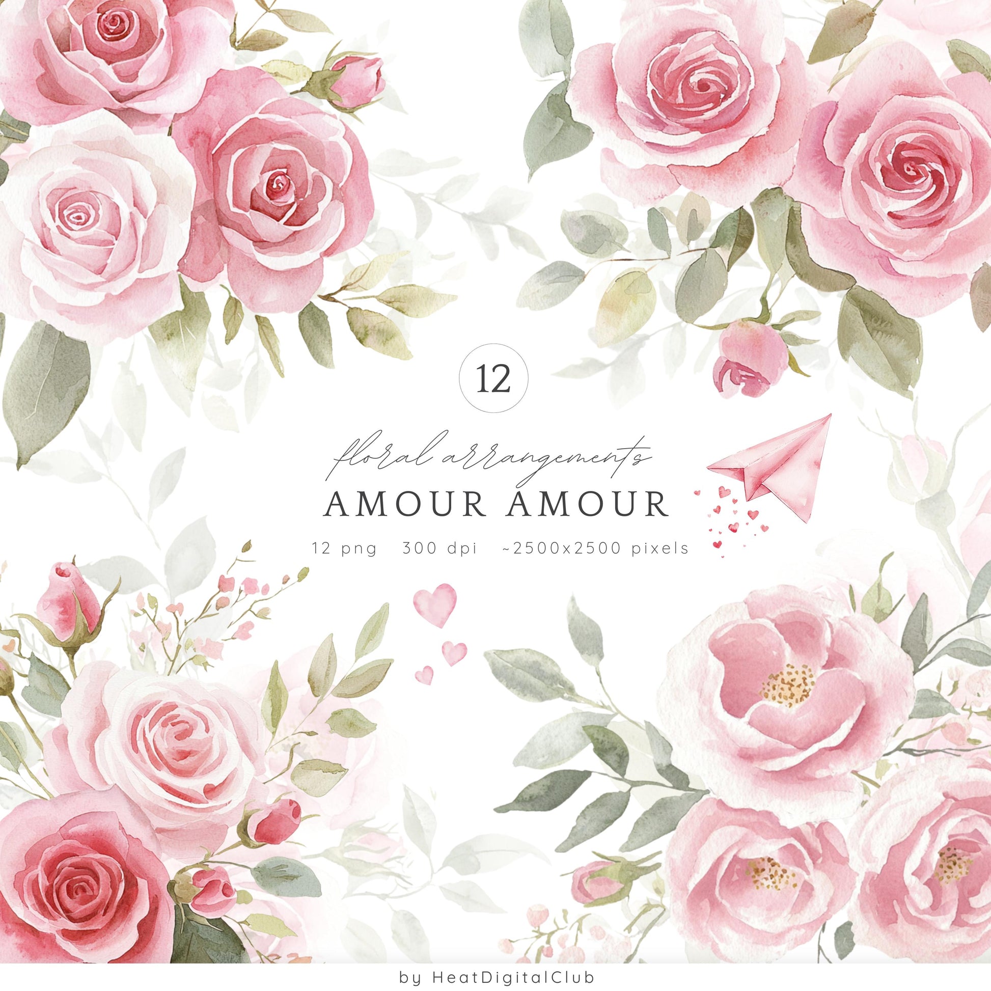 Amour Amour - Valentines Day Floral Arrangements Clipart, Pink Roses | 12 PNG