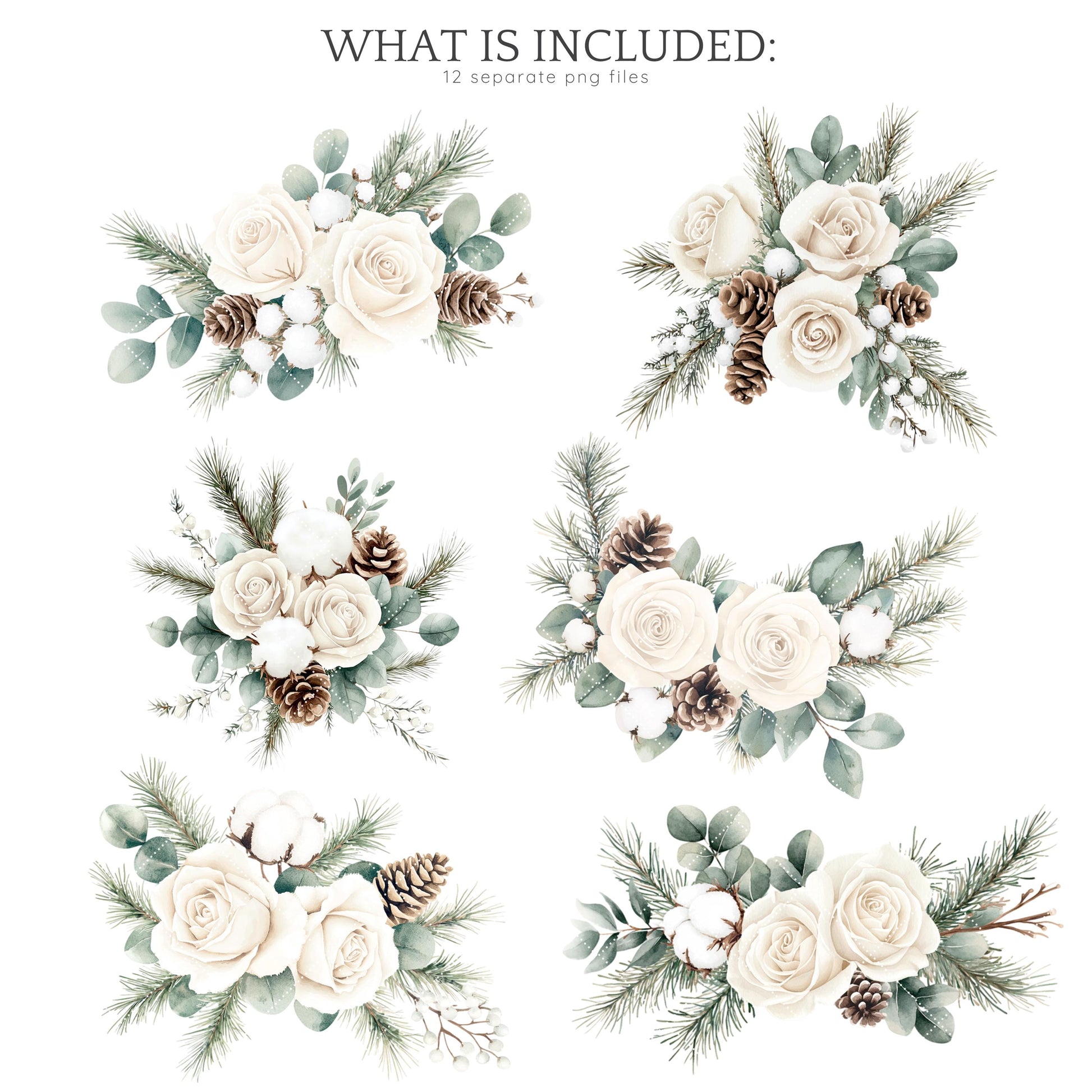 • 12 PNG floral compositions, 300 DPI