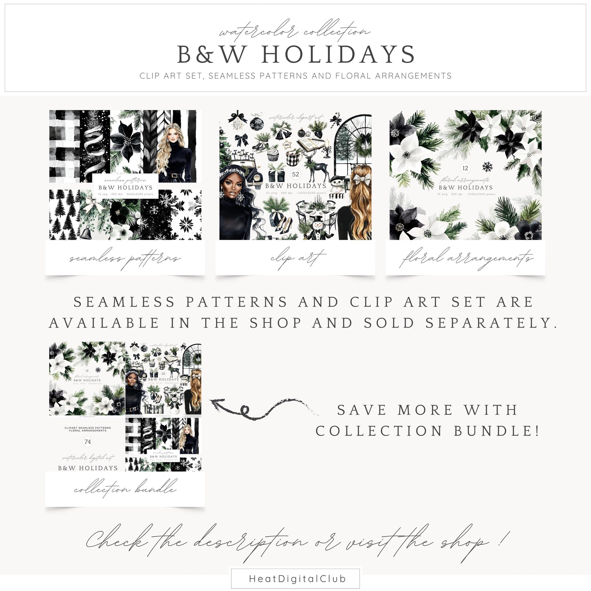 Black and White Holidays - Collection Bundle, Cozy Winter Clipart | 74 PNG/JPEG