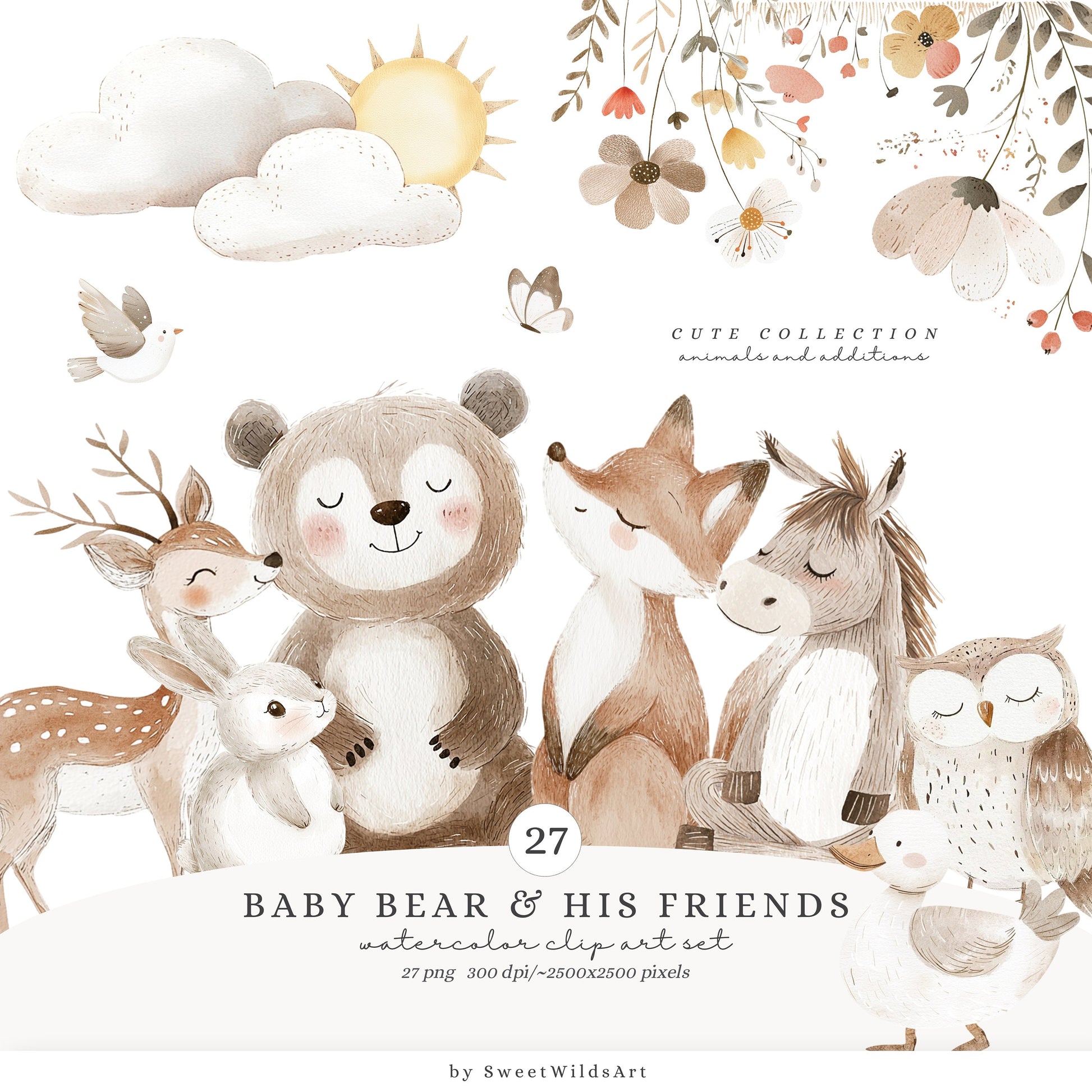 Bring your story to life with the Baby Bear and His Friends clipart set — a curated selection of watercolor illustrations designed for creative freedom and visual charm. Perfect for everything from digital stickers to paper goods.