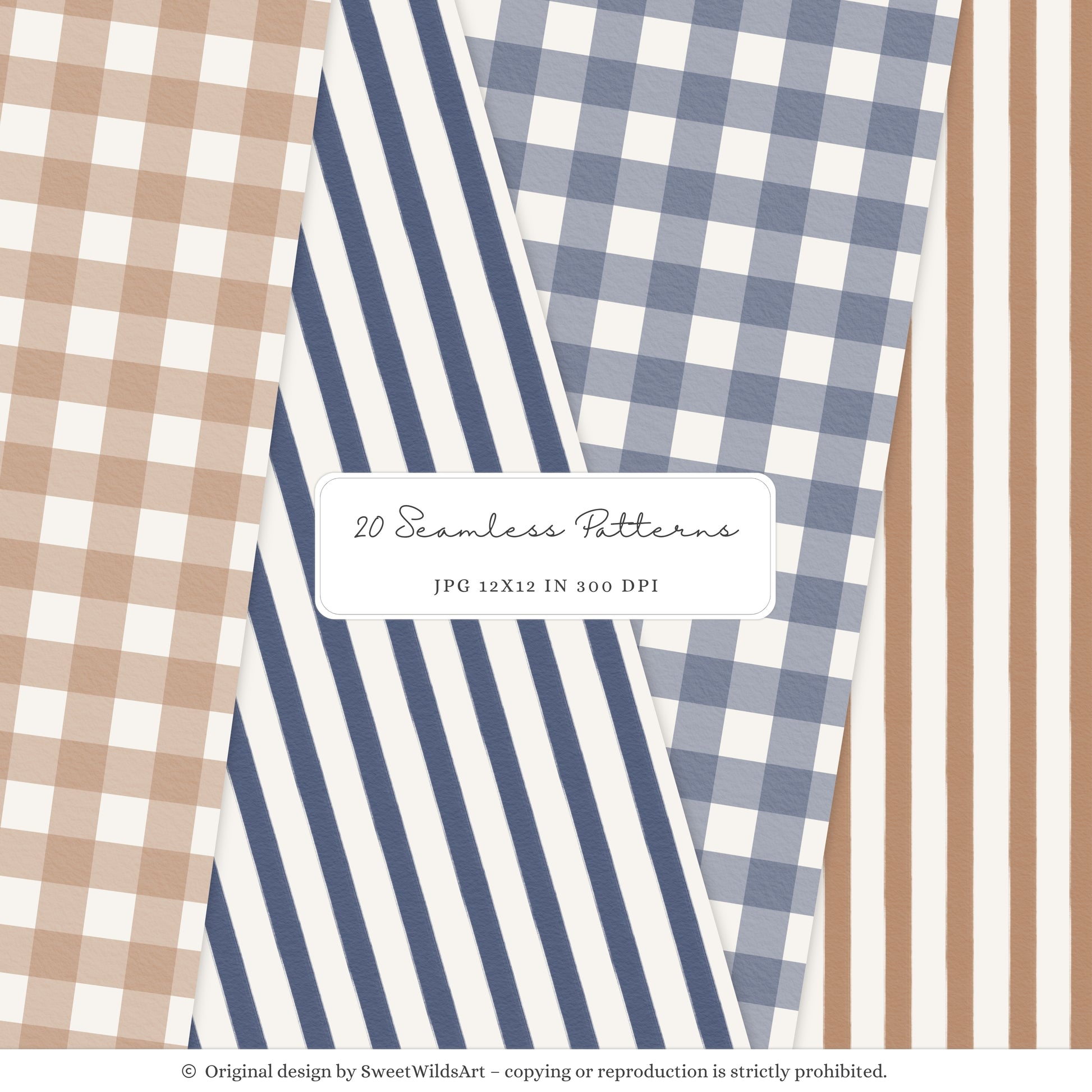 Winter Classics - Seamless Patterns, Blue Brown Tartan, Florals, Woodland, Nursery | 20 PNG