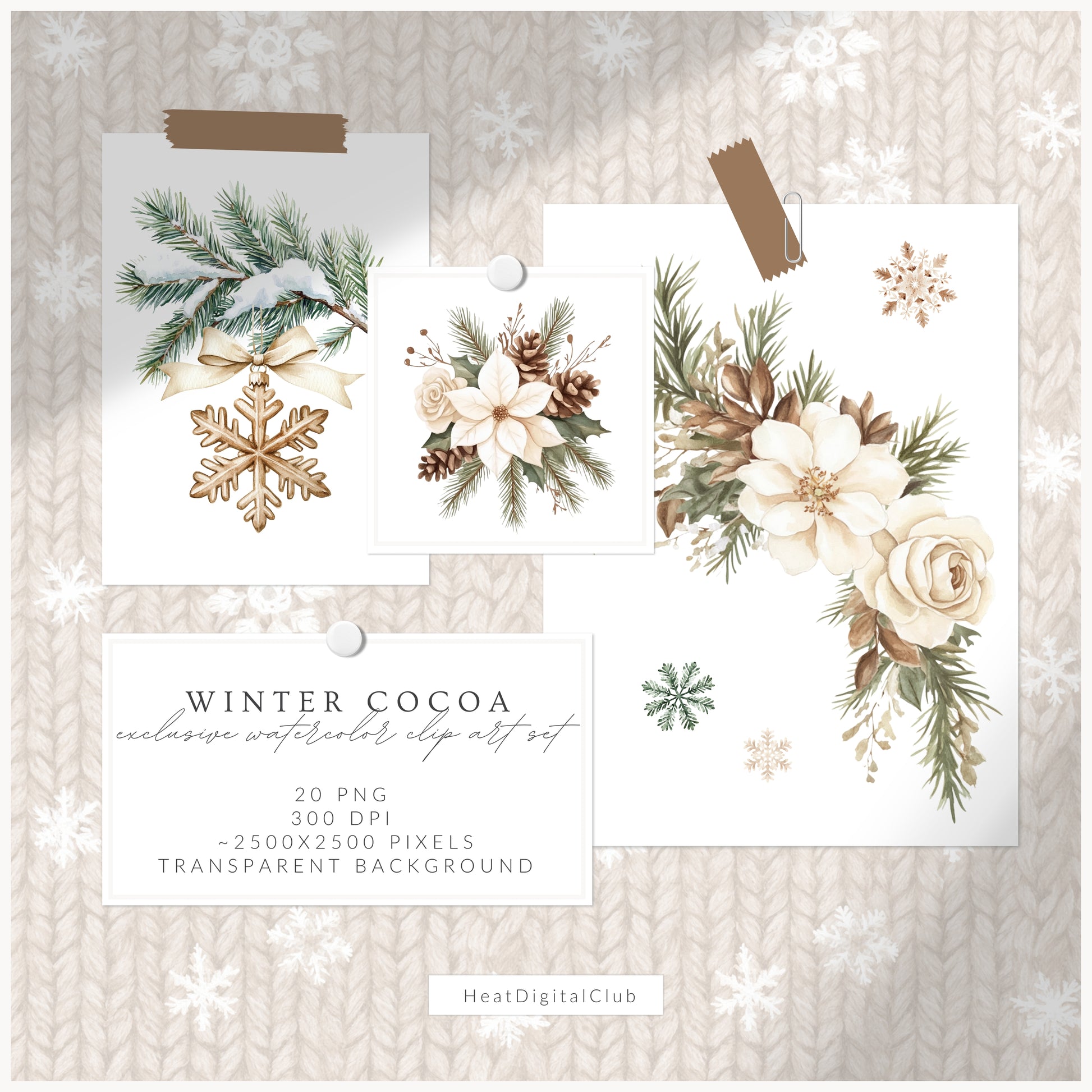 Winter Cocoa - Clipart Set, Elegant Cozy Christmas | 60 PNG