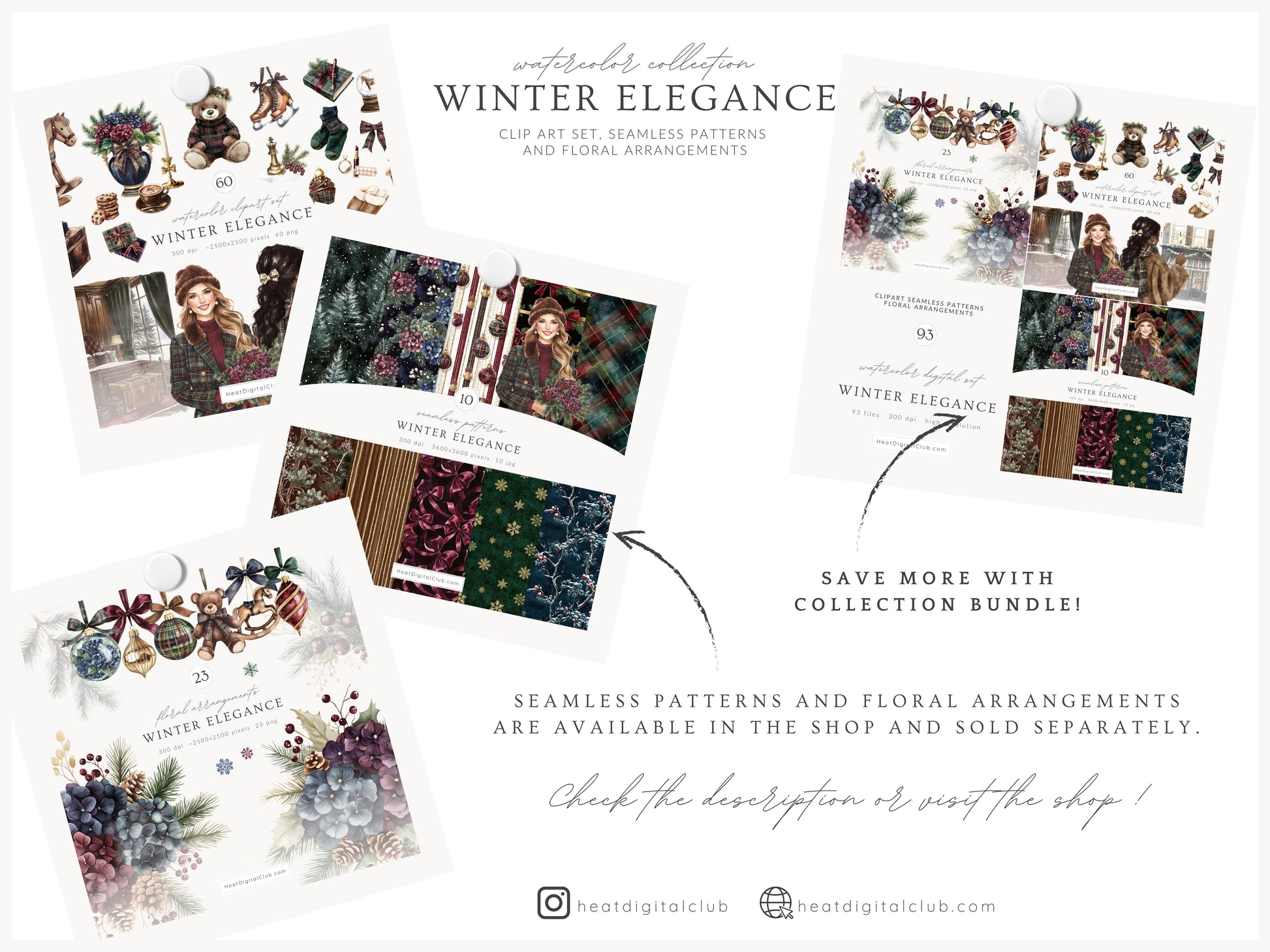 • You can purchase the clipart, patterns, and florals separately — or save by getting the full collection bundle.