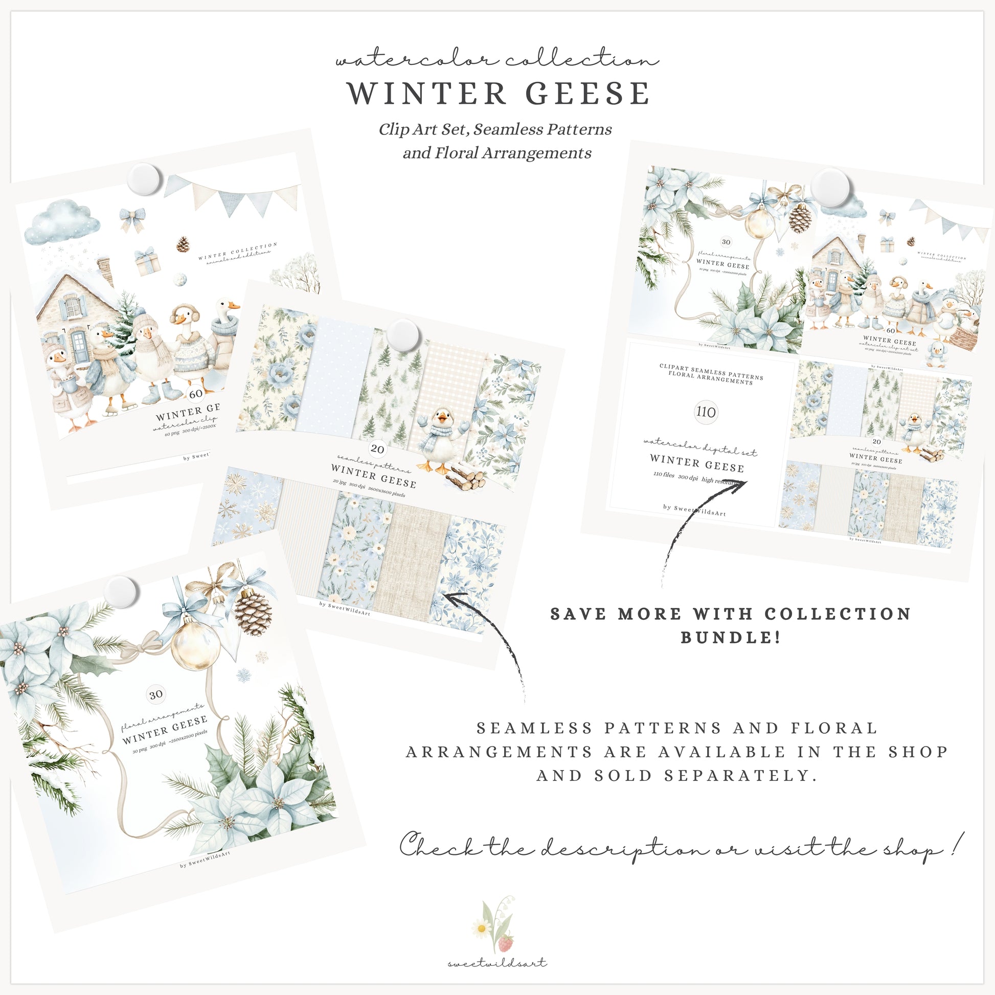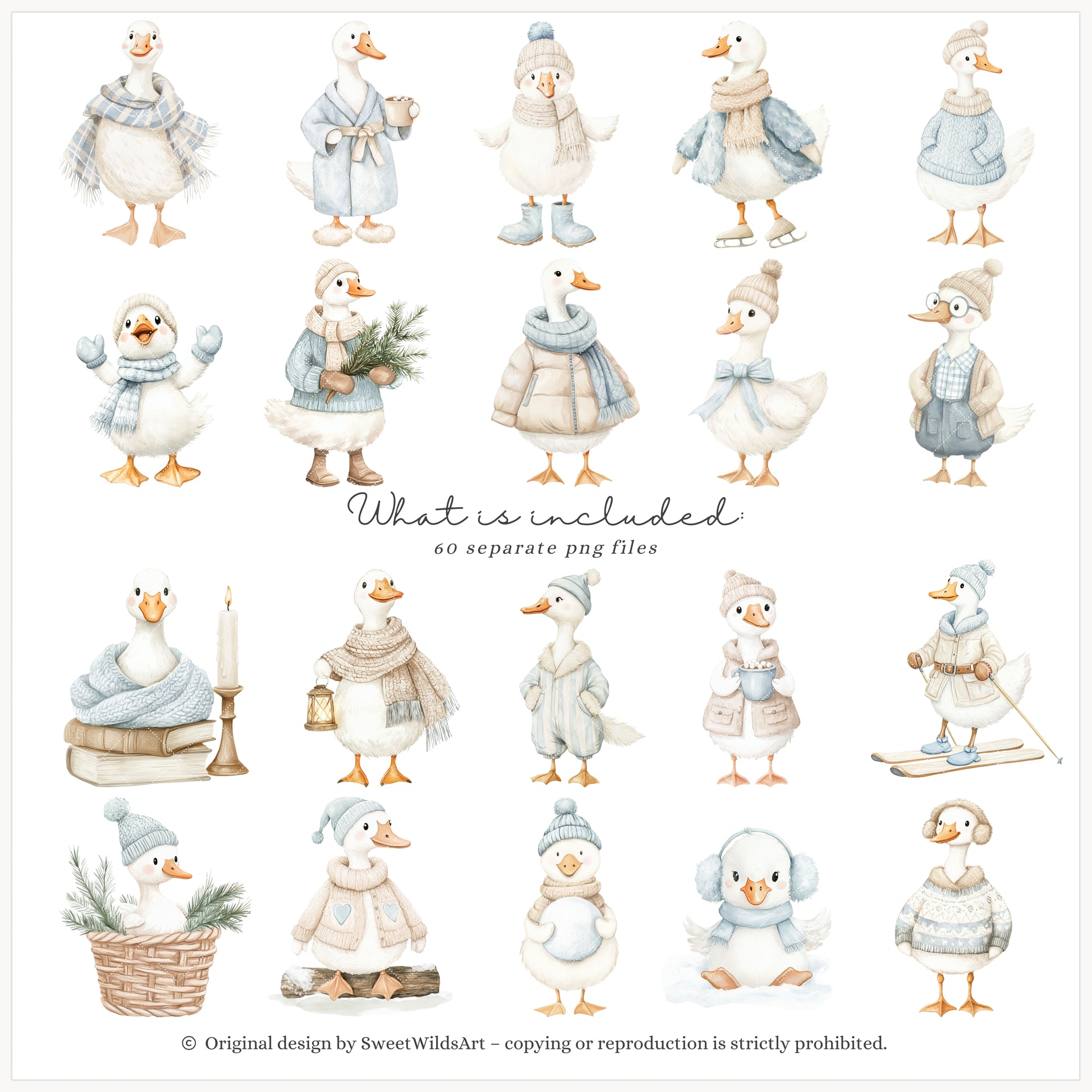 Winter Geese - Collection Clipart, Cute Silly Goose, Cozy Winter, Baby Shower | 110 PNG/JPEG