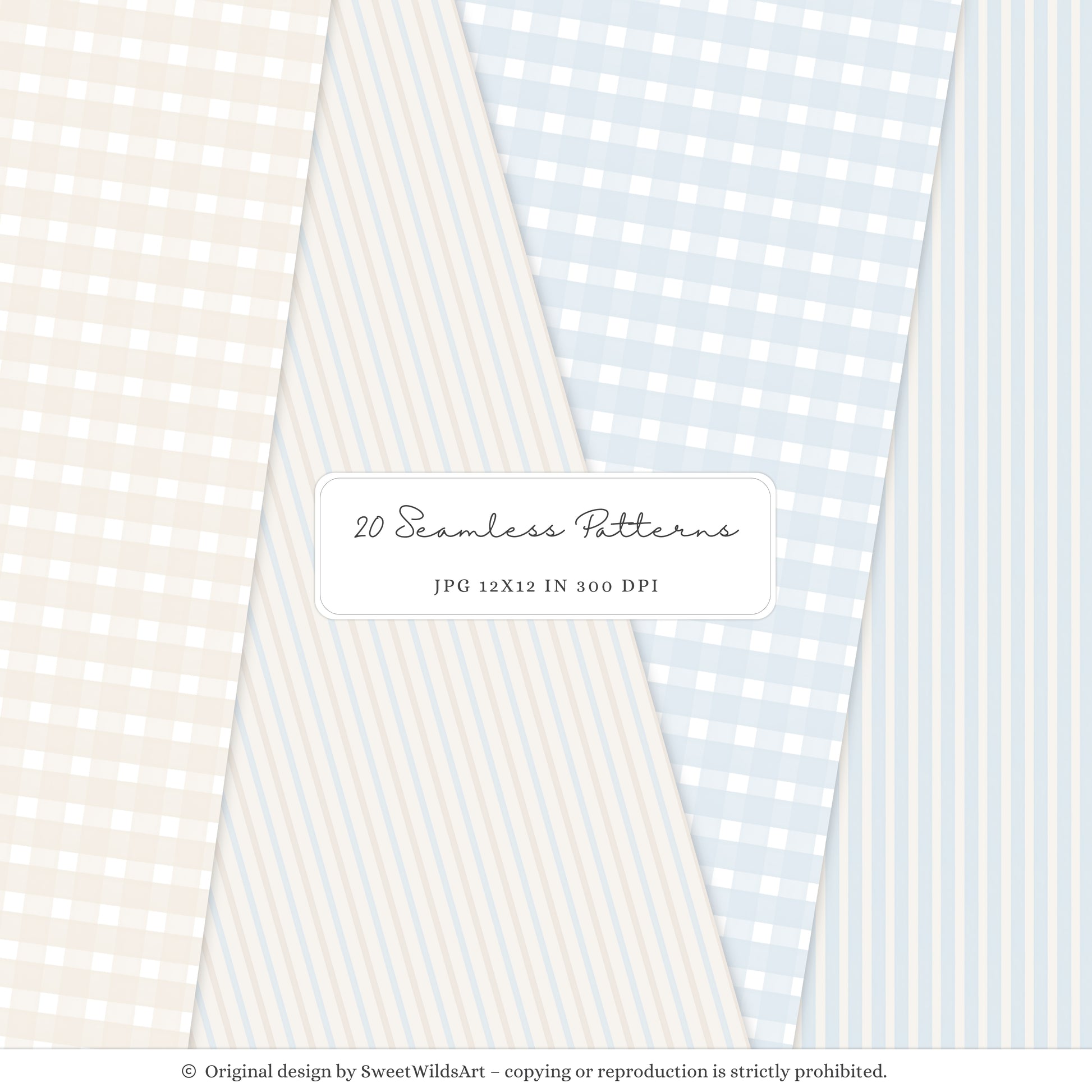 Winter Geese - Winter Seamless Patterns, Soft Blue Beige Plaid, Stripes | 20 JPEG