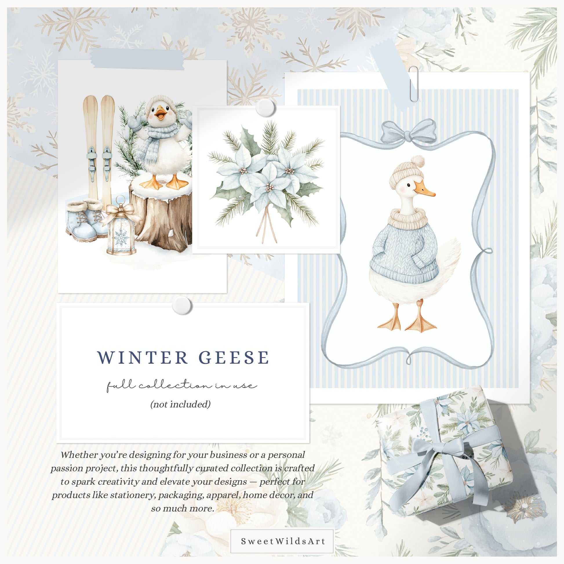 Add elegance and character with the Winter Geese seamless pattern collection — a versatile mix of timeless watercolor designs created to flow beautifully across any surface.