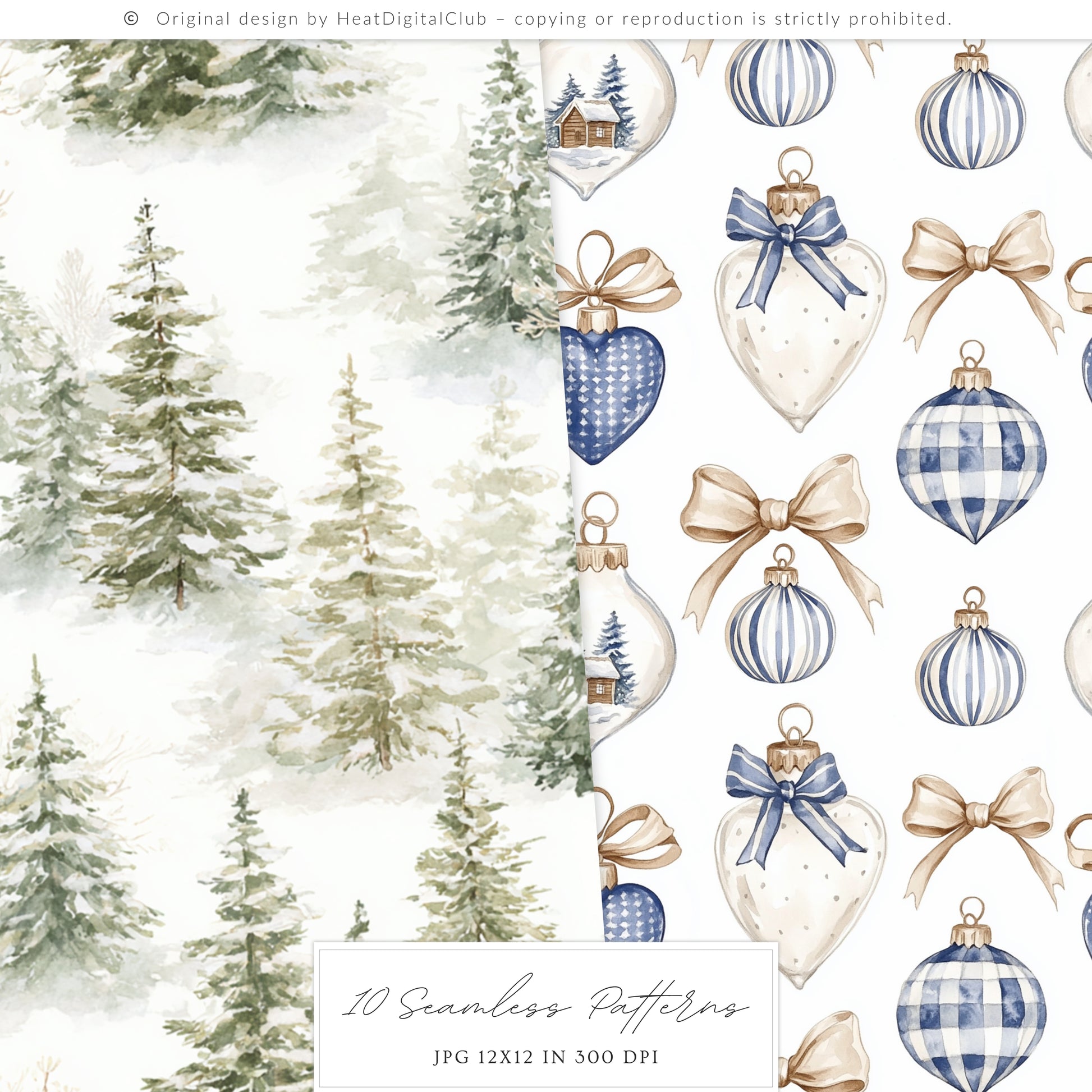 Winter Residence - Watercolor Seamless Patterns, Cozy Elegant Chinoiserie | 10 JPEG